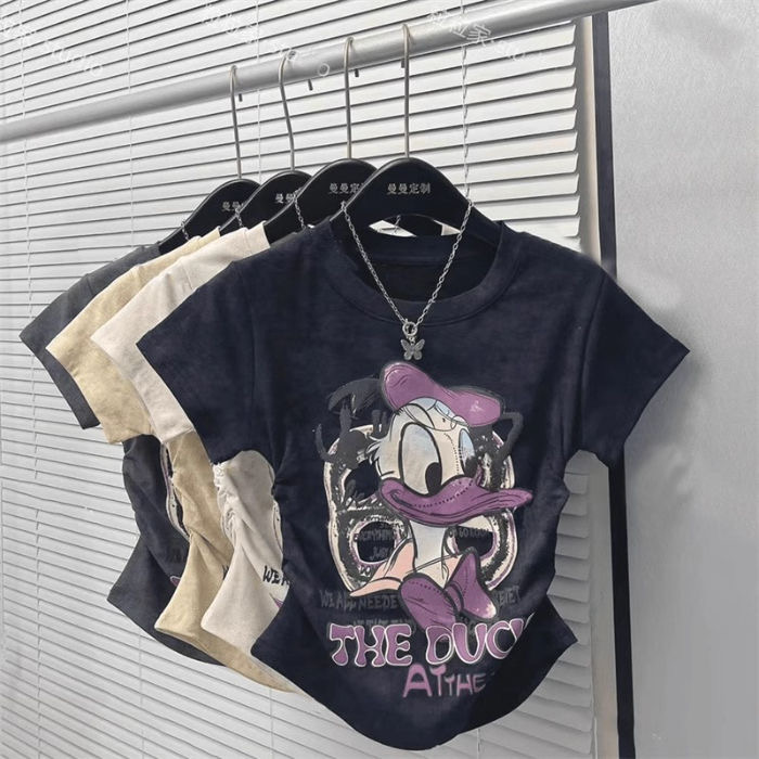 美式复古卡通印花短袖t恤女夏季2025新款百搭修身潮牌宽松上衣ins