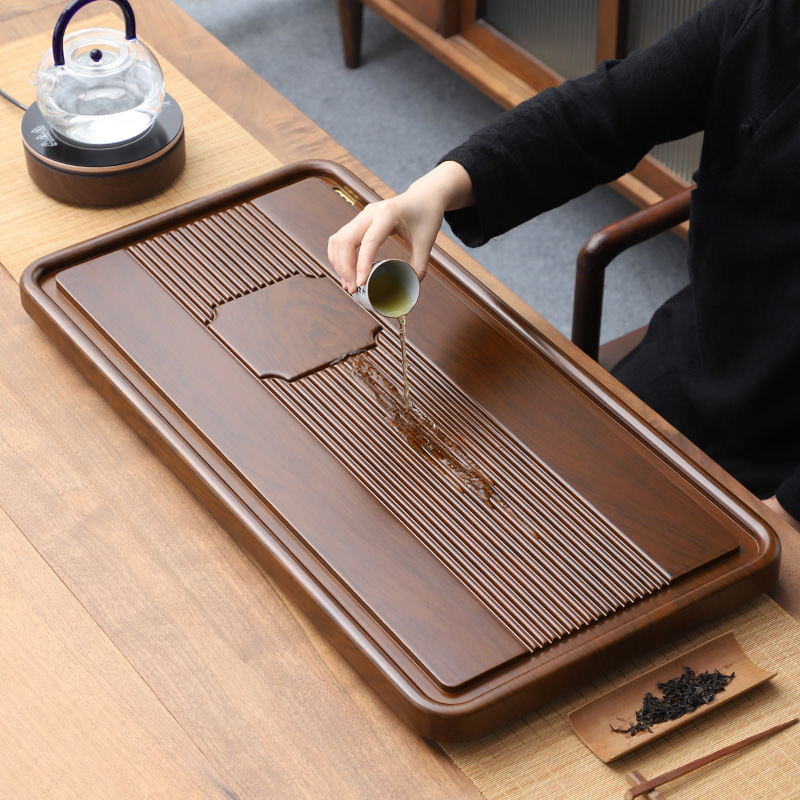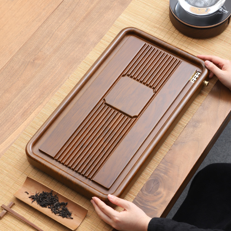 整块实木茶盘排水办公室茶海家用功夫茶台单层中式竹制花梨电木款