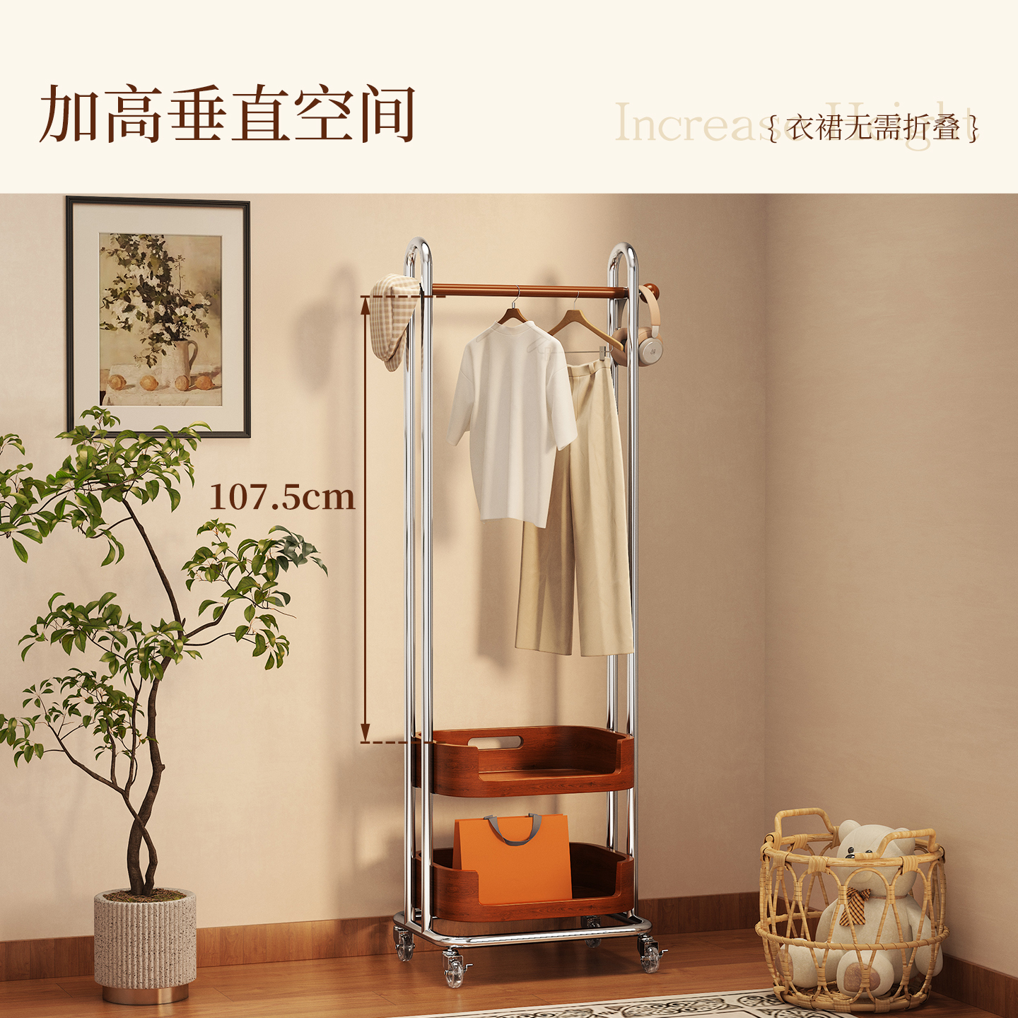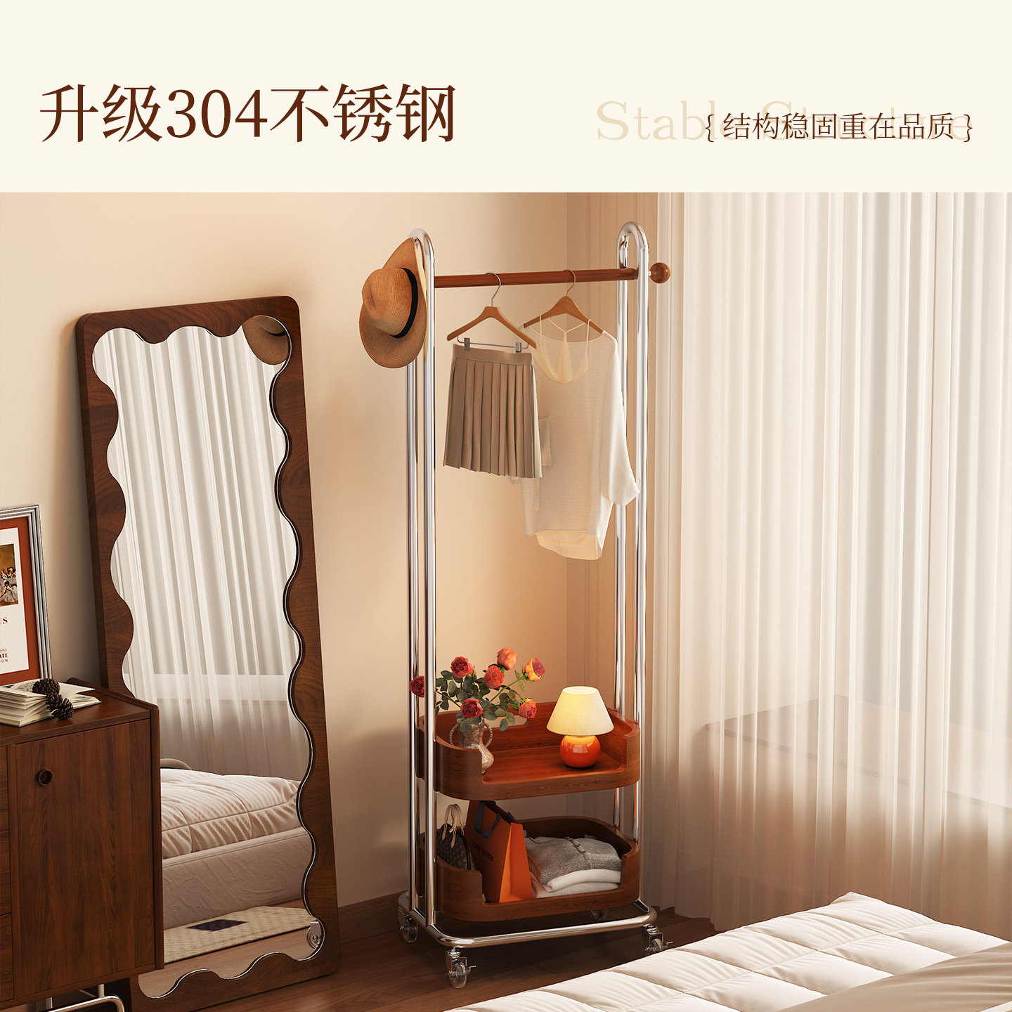 落地式衣帽架可移动不锈钢挂衣架卧室衣服收纳架客厅多功能衣架子