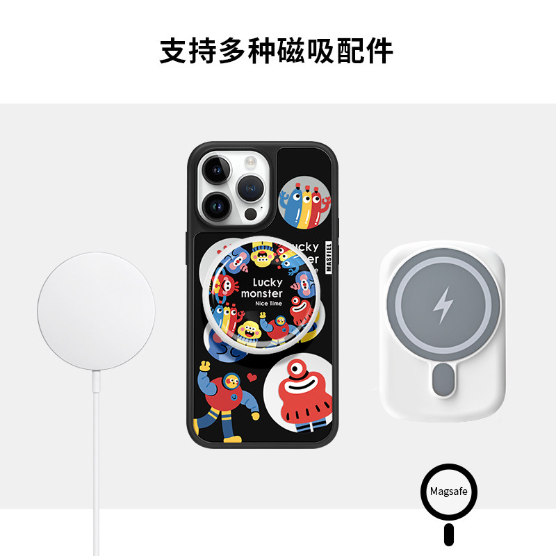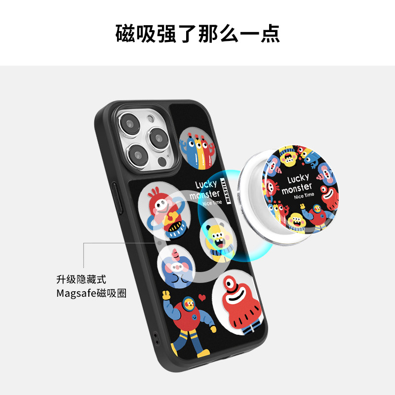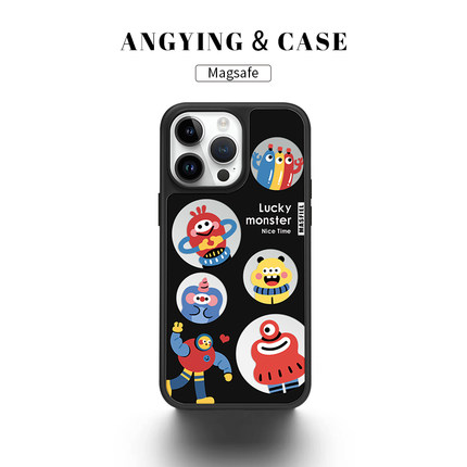 ANGYING × 可爱怪兽家族适用苹果15手机壳iPhone13ProMax磁吸14Pro防摔12Plus新款pm保护套带支架软壳高级感