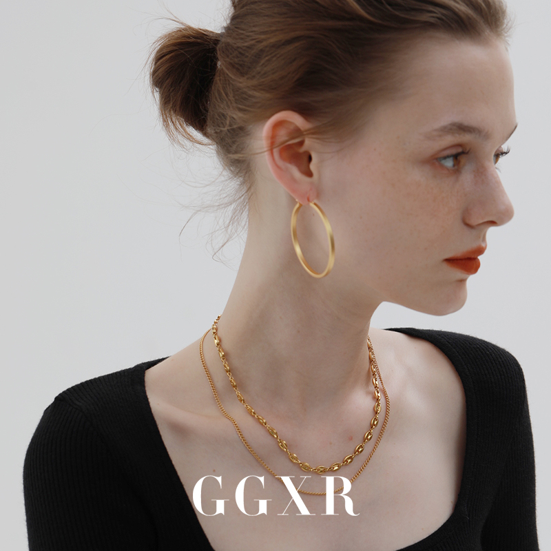 GGXR 欧美HOOP风圆圈耳环夸张时髦小众圈圈耳夹耳饰女Hailey同款