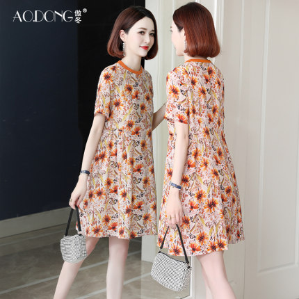 重磅双绉真丝连衣裙女小个子妈妈高端印花气质韩版桑蚕丝裙子夏季