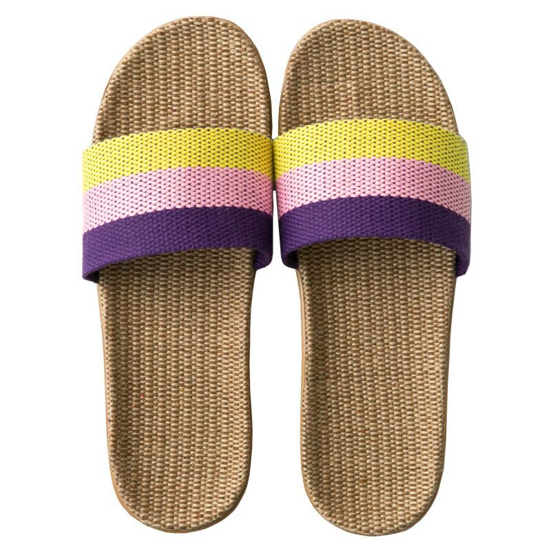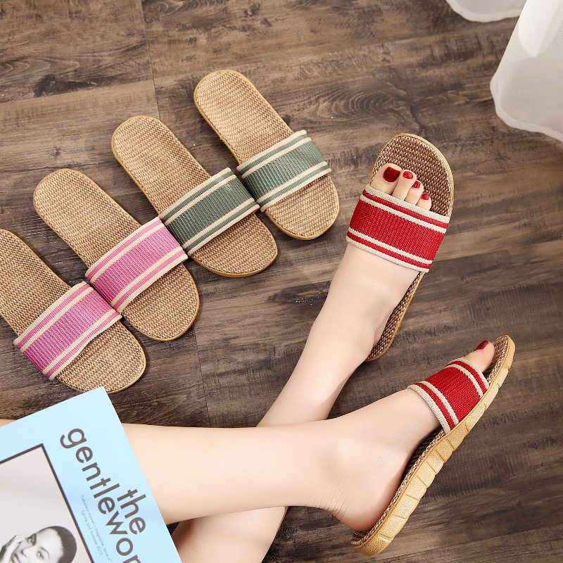 新款夏季室内木地板情侣男女款亚麻防滑厚底居家凉拖鞋