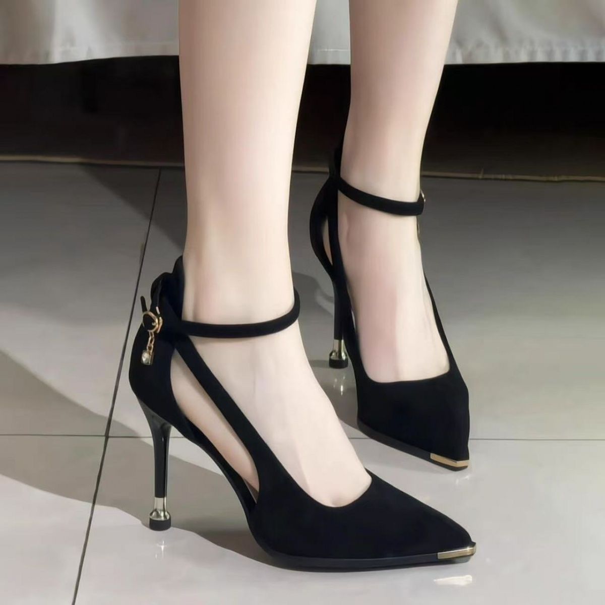 御姐高级感职业2025高跟鞋女黑色细跟气质名媛绒面浅口不累脚单鞋