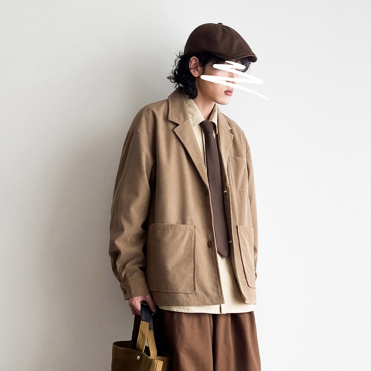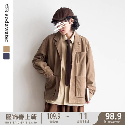 苏打汽水工作室日系男女款时尚小西装春季青年流行华夫格单西外套