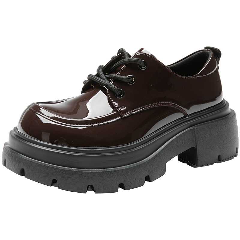 大东黑色乐福鞋女2025新款春秋厚底增高百搭英伦风小皮鞋漆皮单鞋