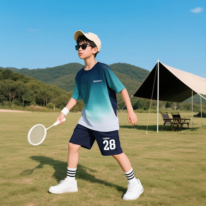 男童夏季球服套装儿童夏装运动服短袖中大童渐变足球服速干衣酷帅