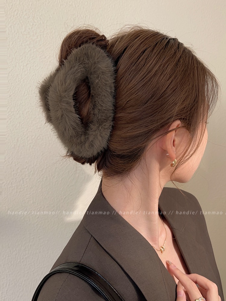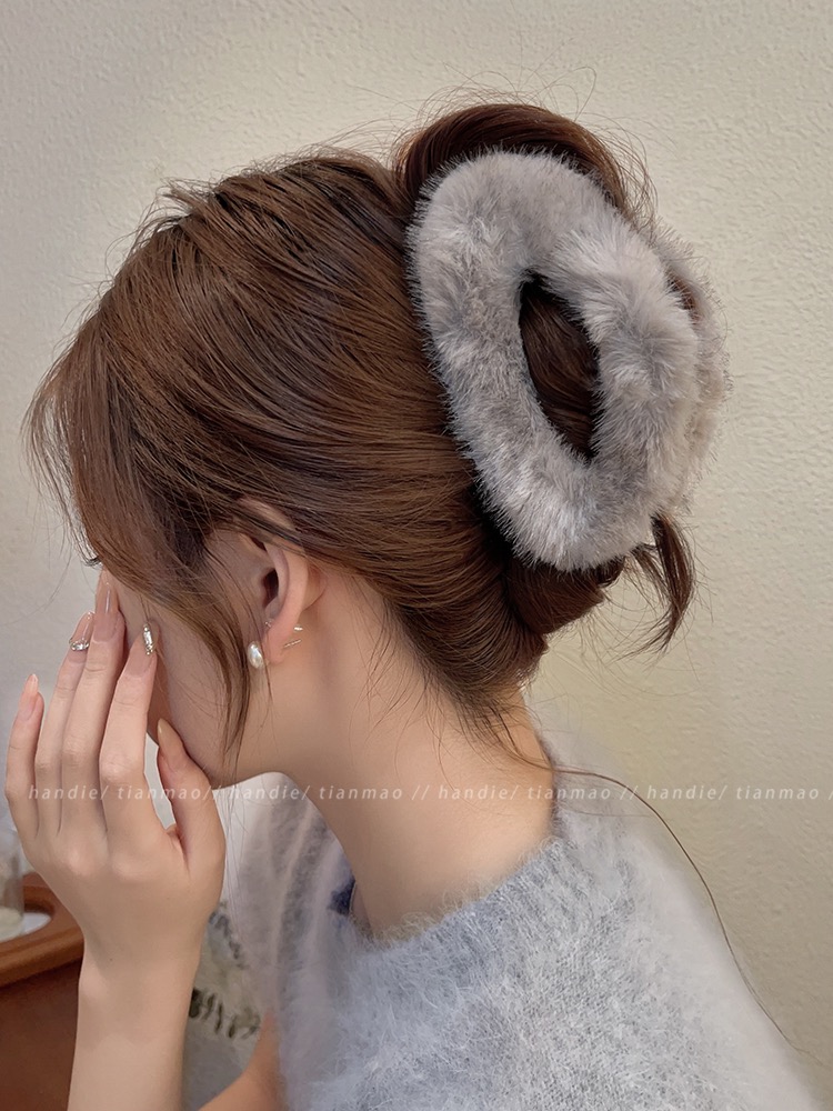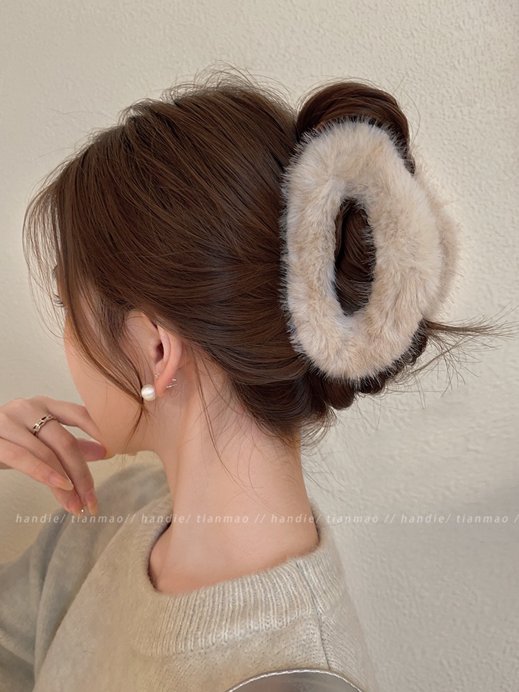 软fufu~早秋毛绒云朵抓夹女后脑勺大号夹子头饰高级感盘发鲨鱼夹