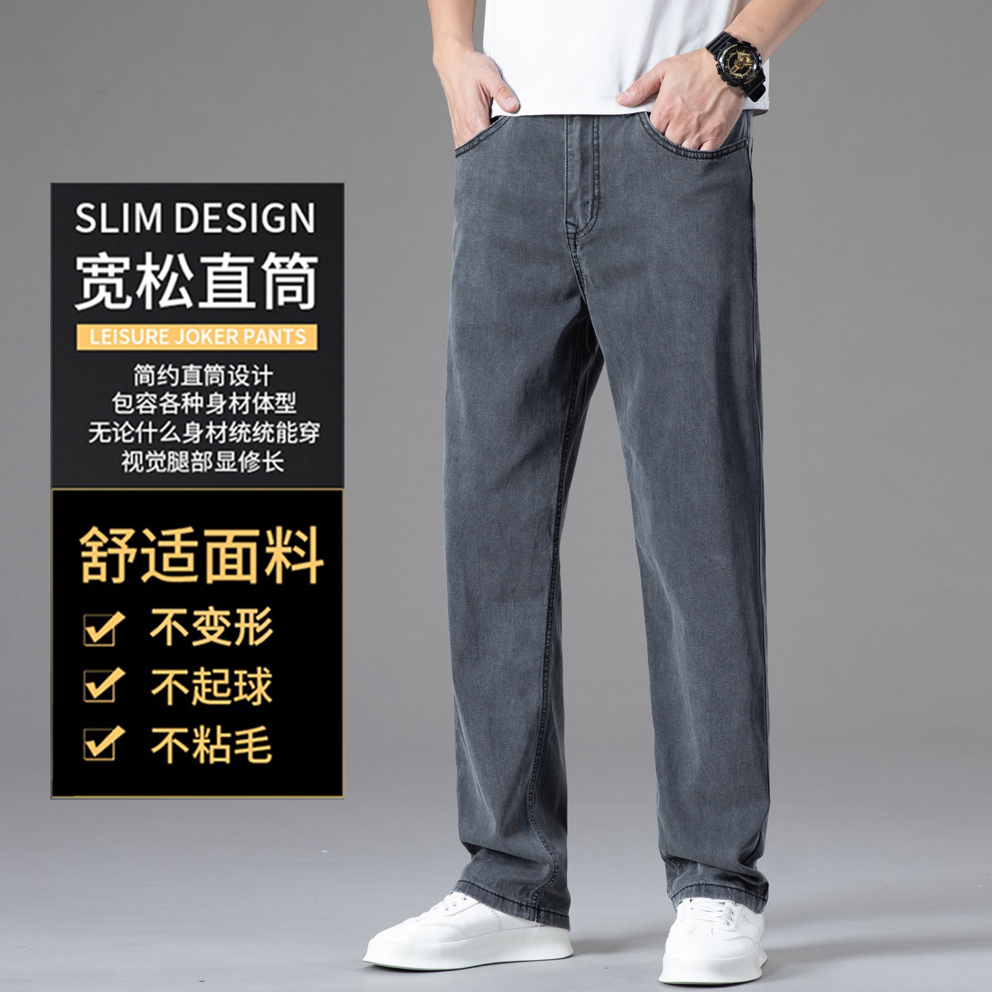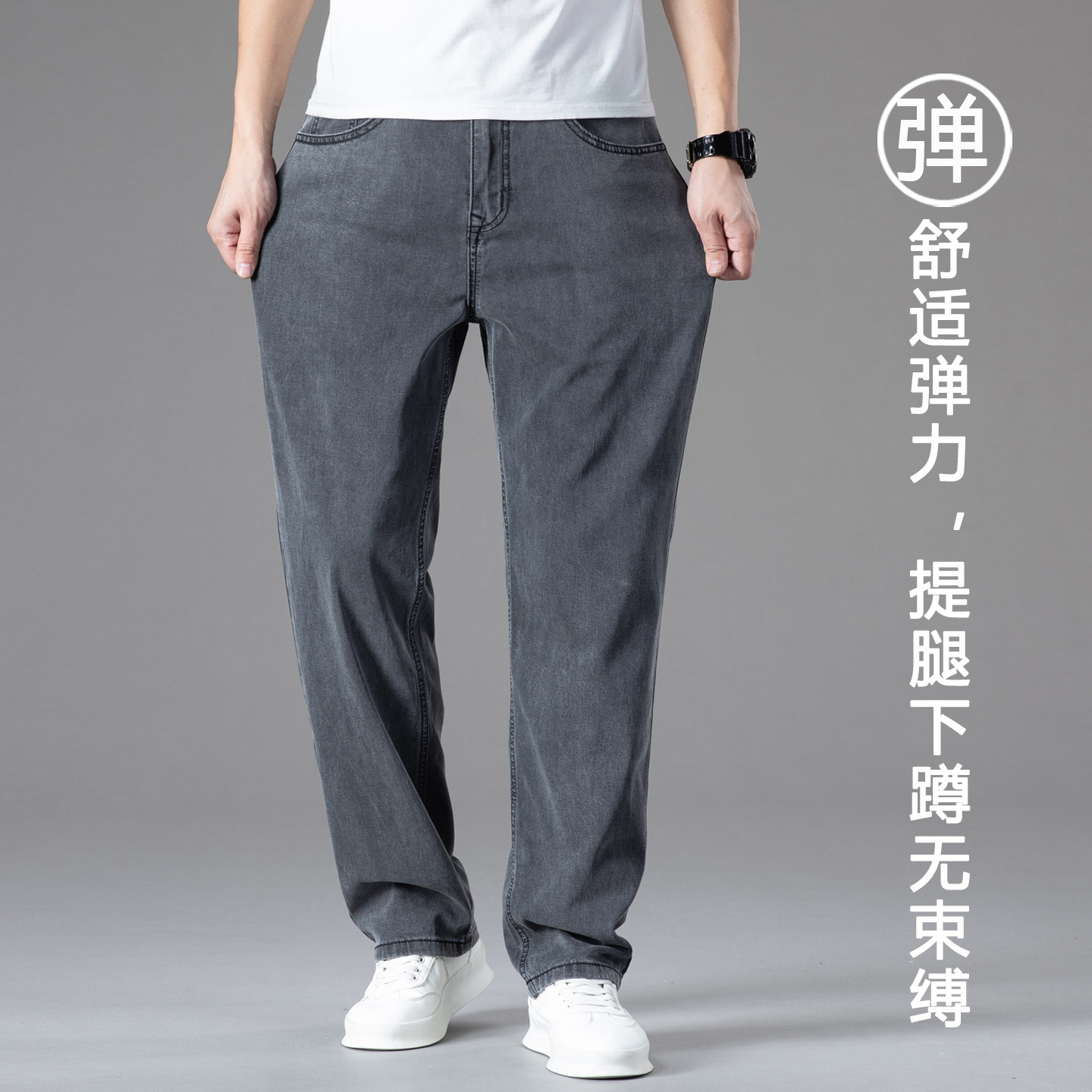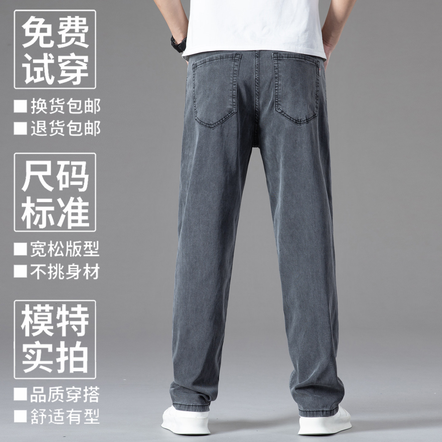 超薄灰色天丝牛仔裤男夏薄款宽松2025新款冰丝夏天高腰直筒裤子男