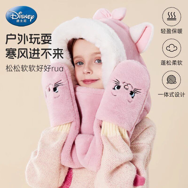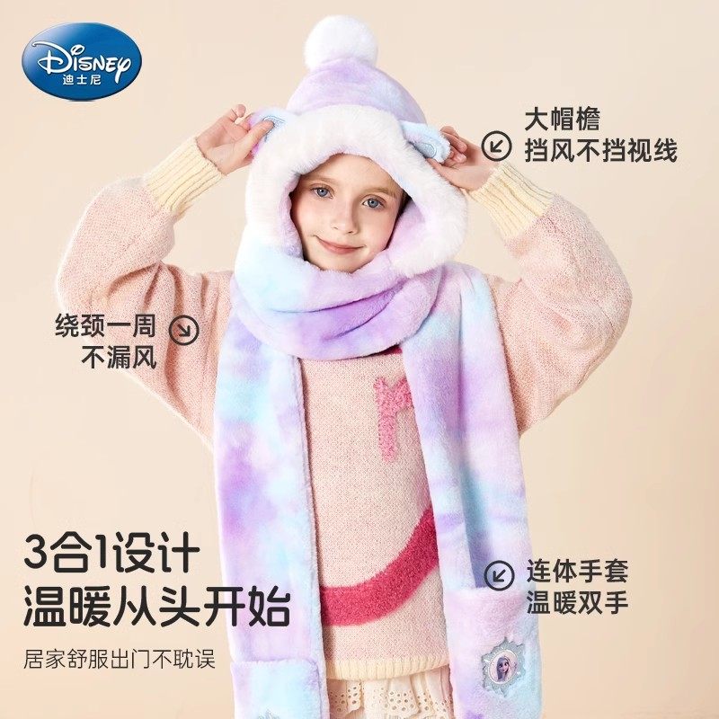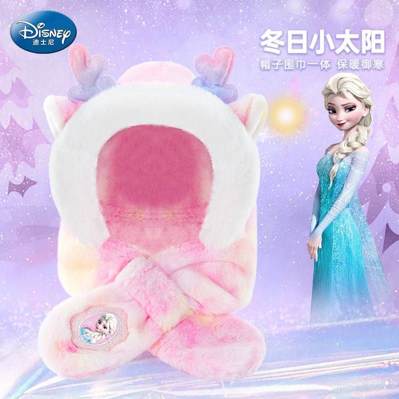 迪士尼儿童帽子围巾一体女童帽子冬2025新款冬季保暖围脖爱莎公主