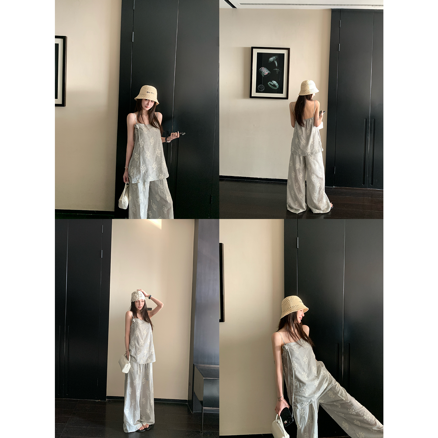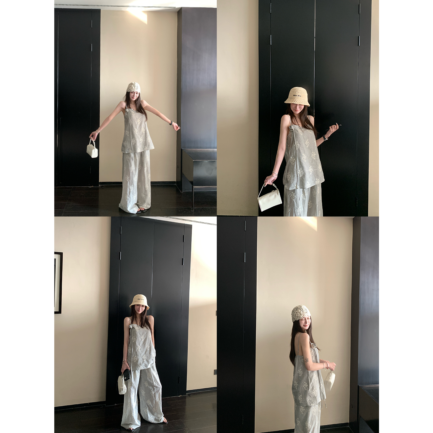 Skk Store 薄荷条纹集 设计感条纹手工立体花吊带休闲裤套装女夏