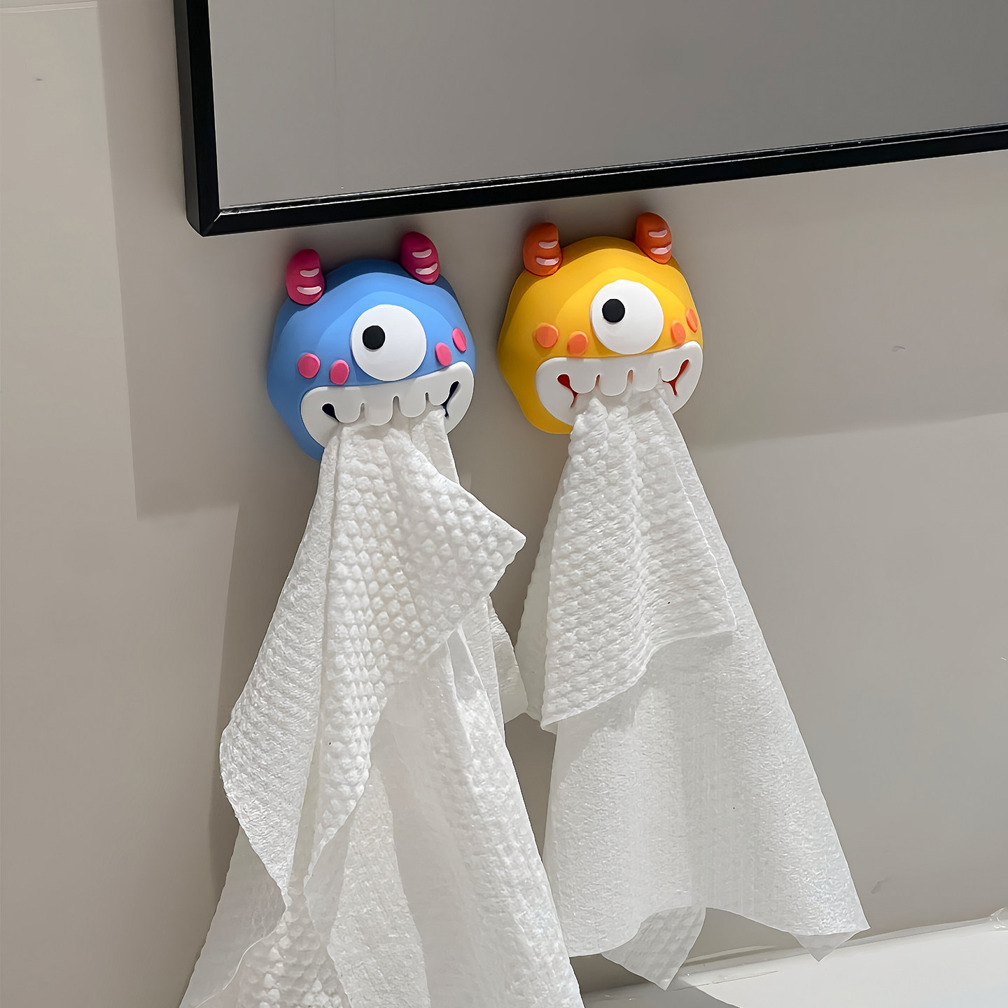多巴胺洗脸巾收纳塞浴室毛巾架挂钩小怪兽毛巾夹免打孔创意抹布塞