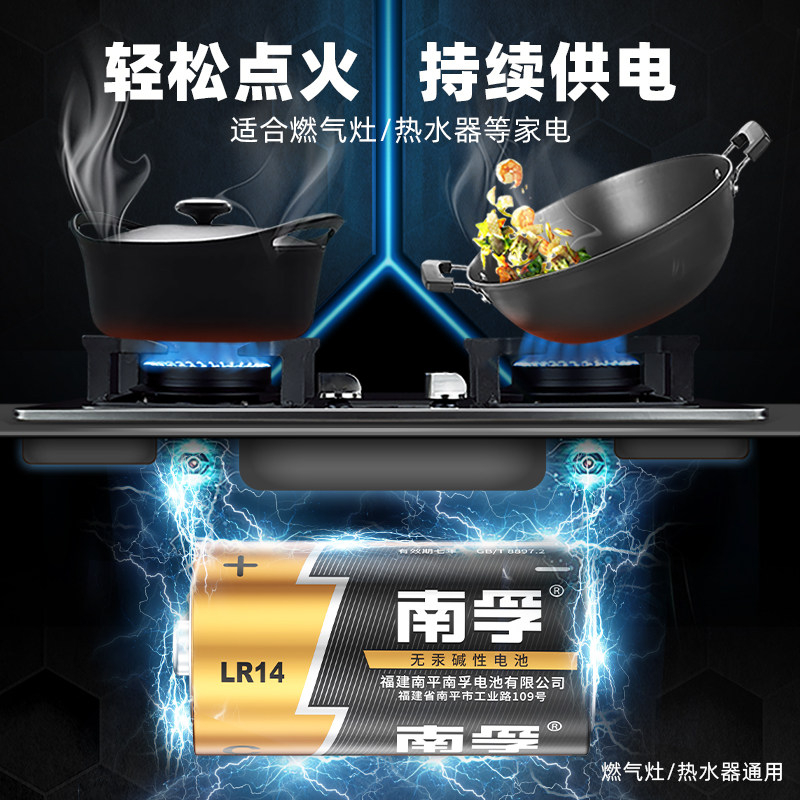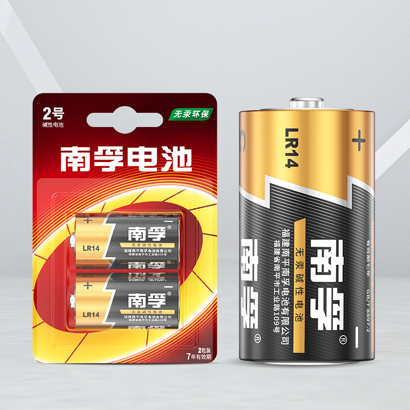 南孚二号2节电池C型LR14碱性2号适用面包超人花洒摇椅费雪玩具收音机手电筒中号通3号三号1.5v干电池4粒批发