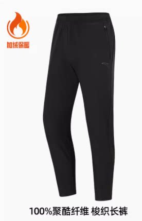 安踏正品男裤2023冬新款加绒时尚收口休闲梭织运动长裤952345501
