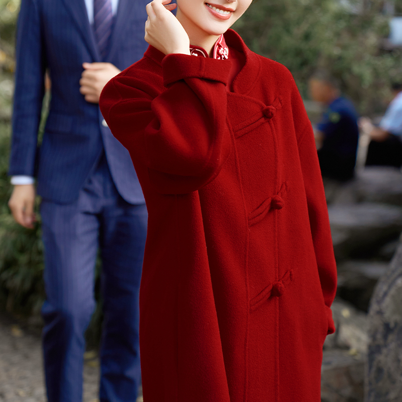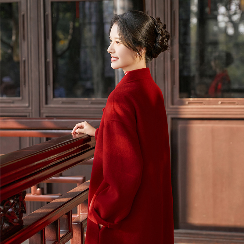 时光裁剪-胭脂-红色羊毛呢子大衣2025冬季新款新娘结婚毛呢外套女