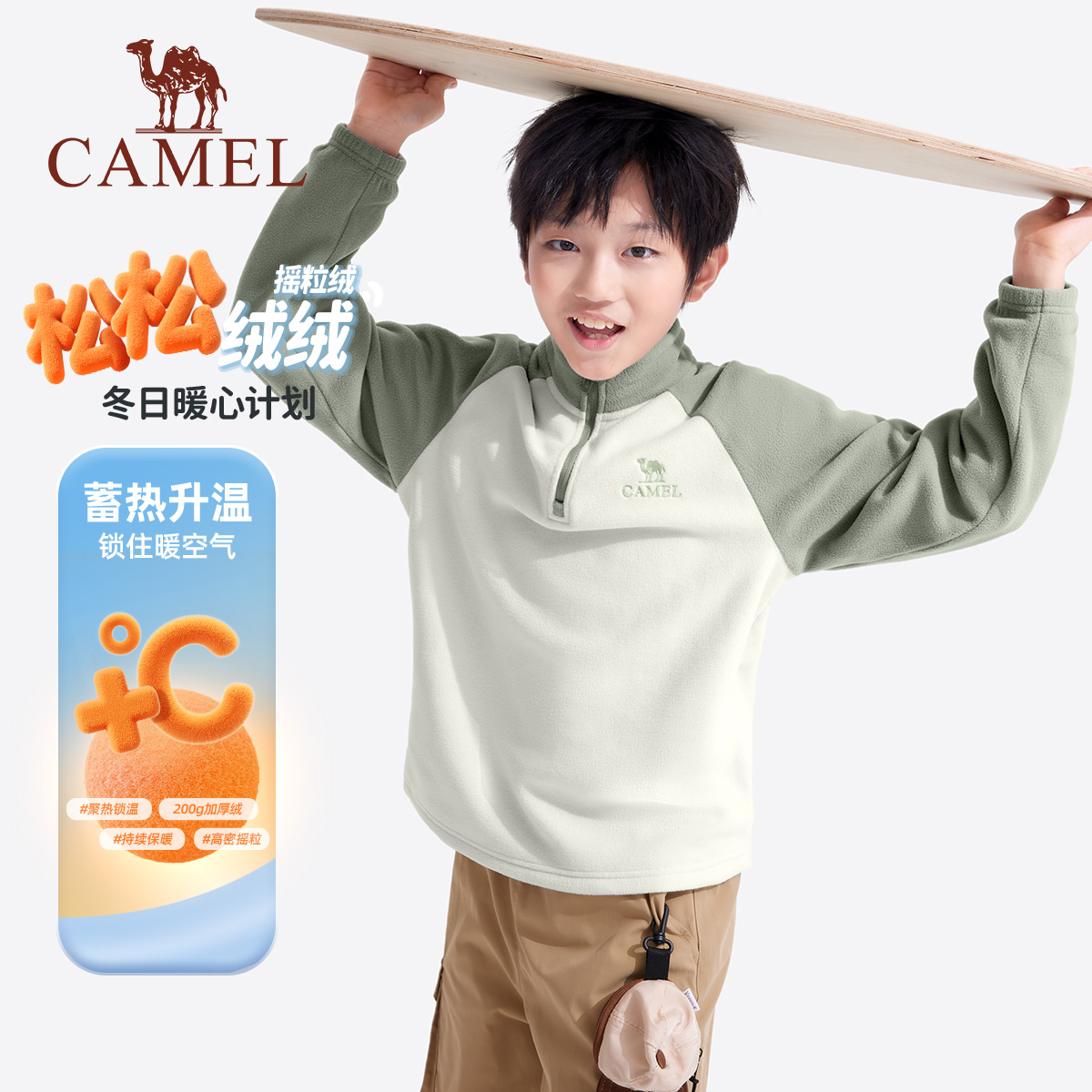 小骆驼儿童抓绒卫衣2025新款半拉链立领长袖上衣男童摇粒绒打底衫