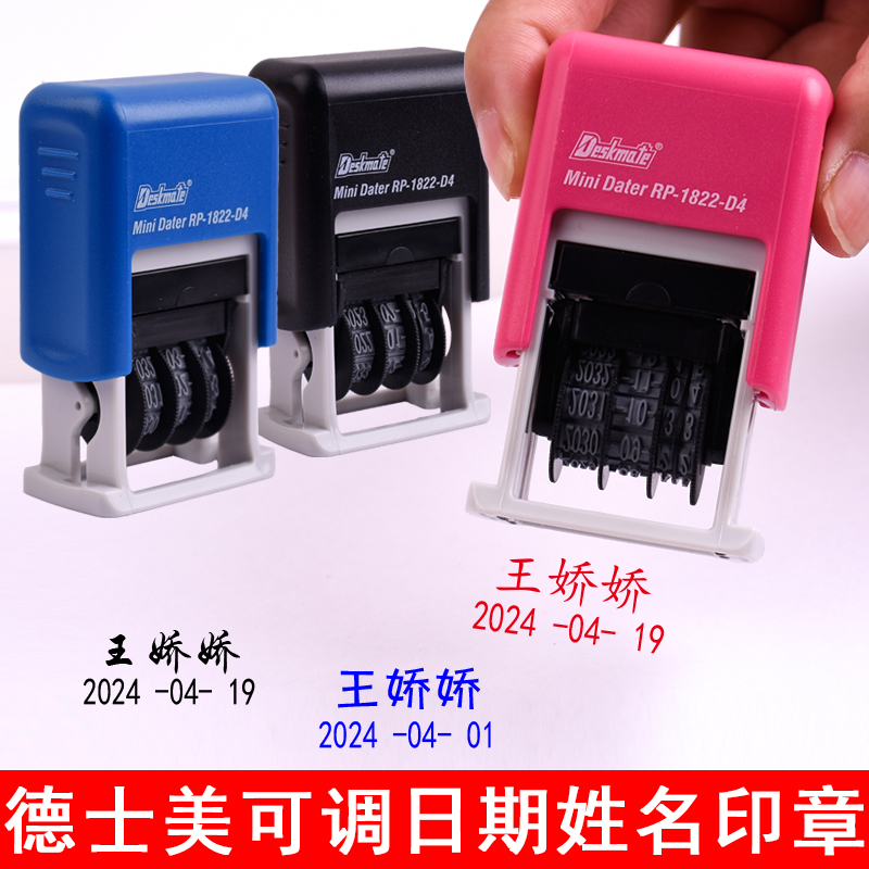 名字印章带日期签名印章十二年日期可调德士美定制带日期姓名印章按压式回墨翻斗自动出墨姓名签字章定制