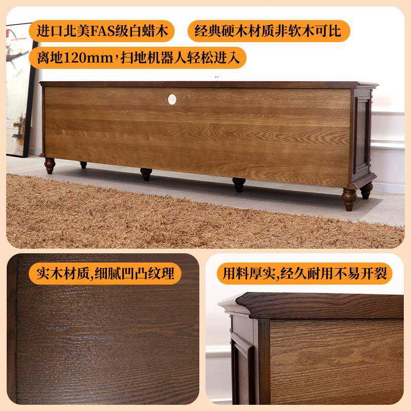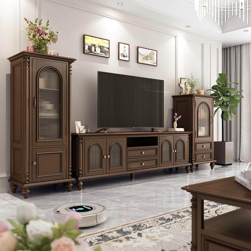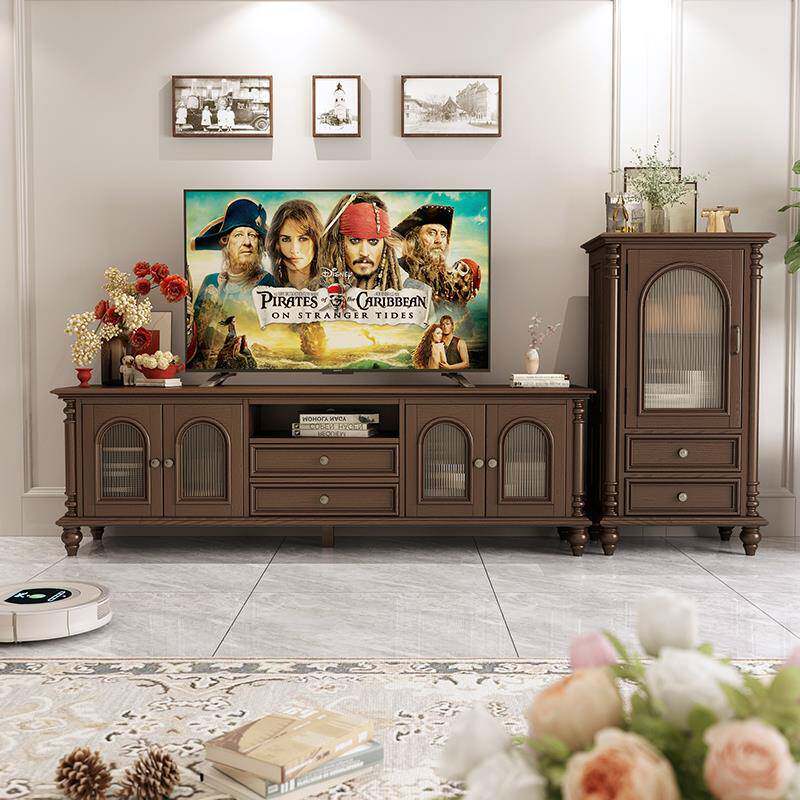 美式乡村全实木电视机柜2.2米复古客厅成套家具法式茶几家用组合