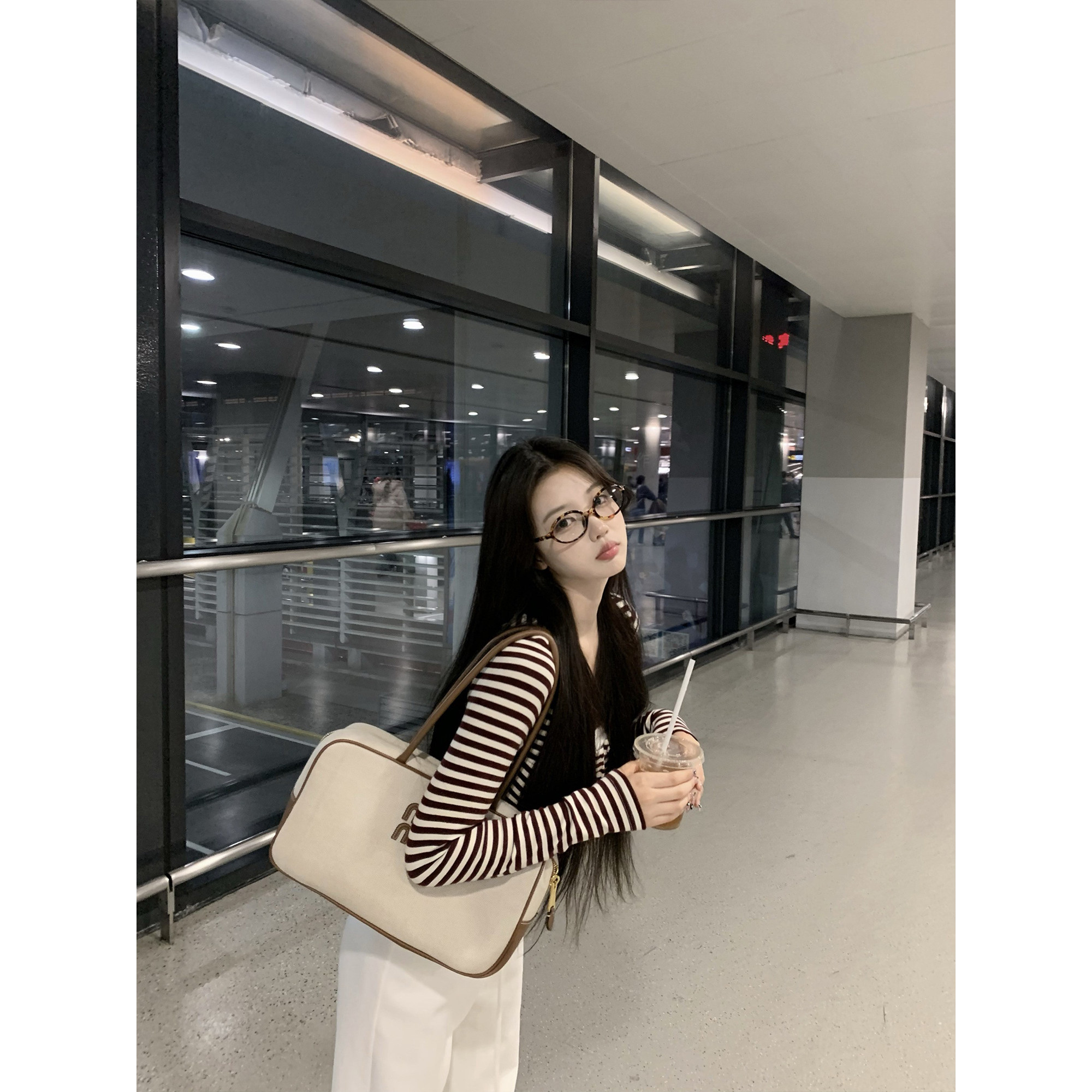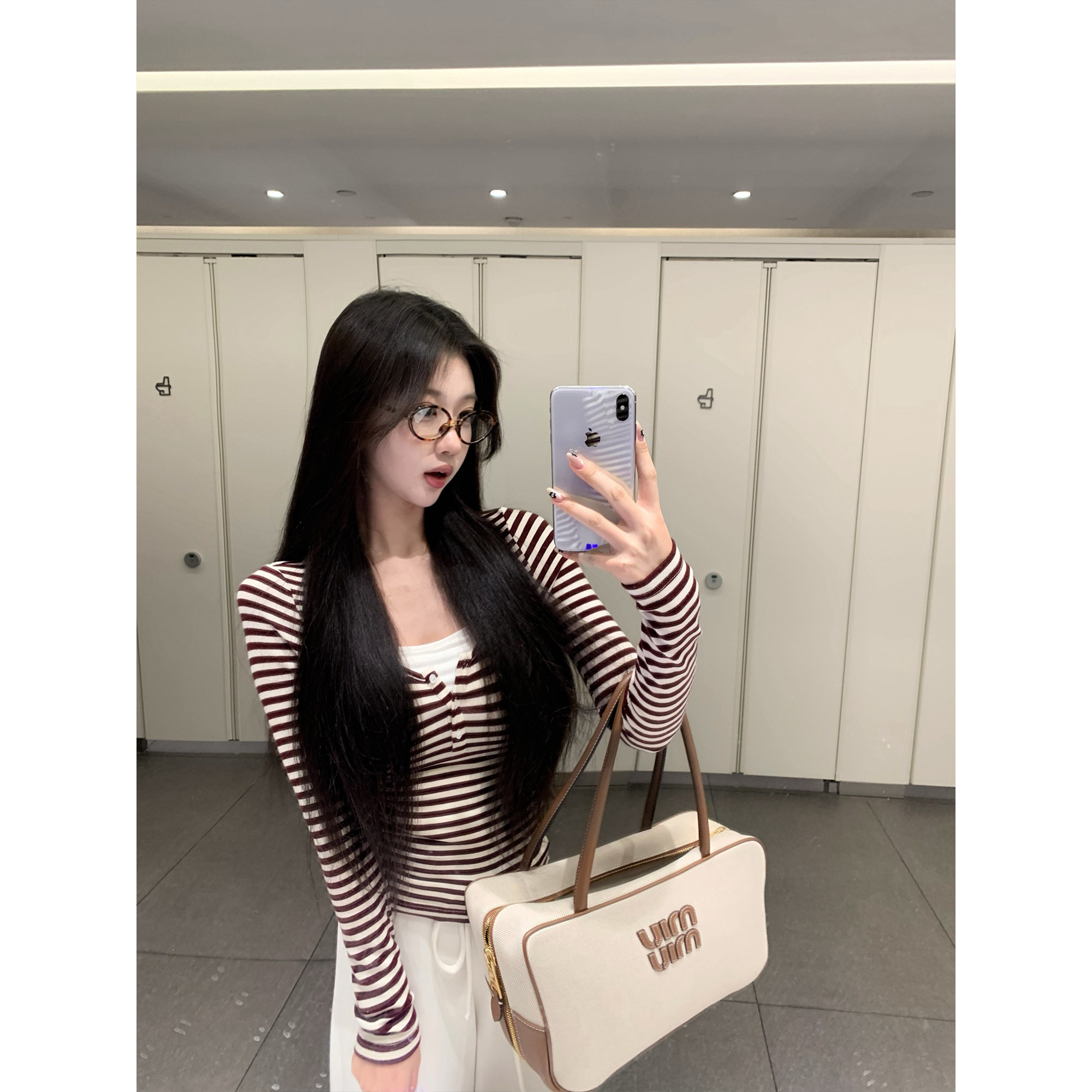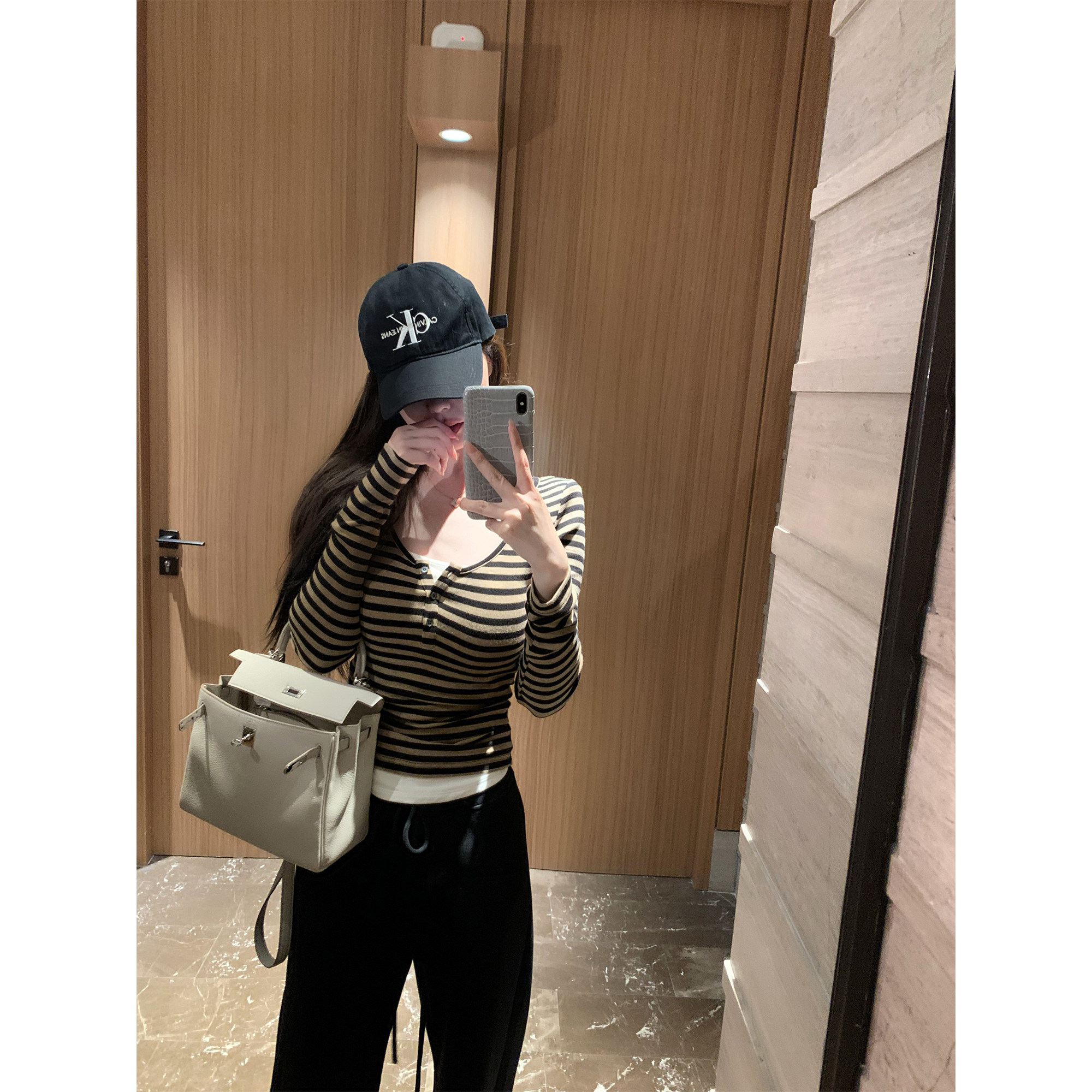 POET WONG【轻氧日常】百搭定制条纹韩女休闲百搭长袖显瘦松弛T恤