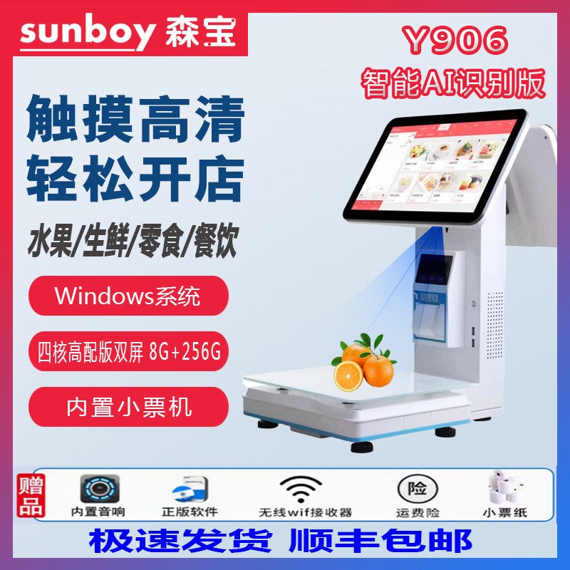 森宝Ai智能自动识别收银机双屏收银秤超市生鲜水果V蔬菜称重一体