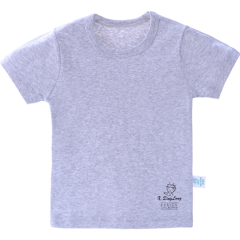 夏装小青龙儿童纯色t恤纯棉男童女童米白色全棉圆领短袖宝宝薄款