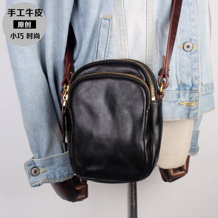 真皮新款斜挎包迷你头层牛皮挎包手工休闲单肩包男士多功能手机包