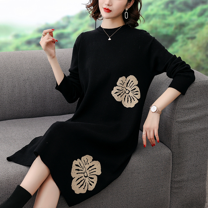 妈妈装毛衣中长款羊毛打底衫中老年女装秋冬加肥加大码连衣裙高贵