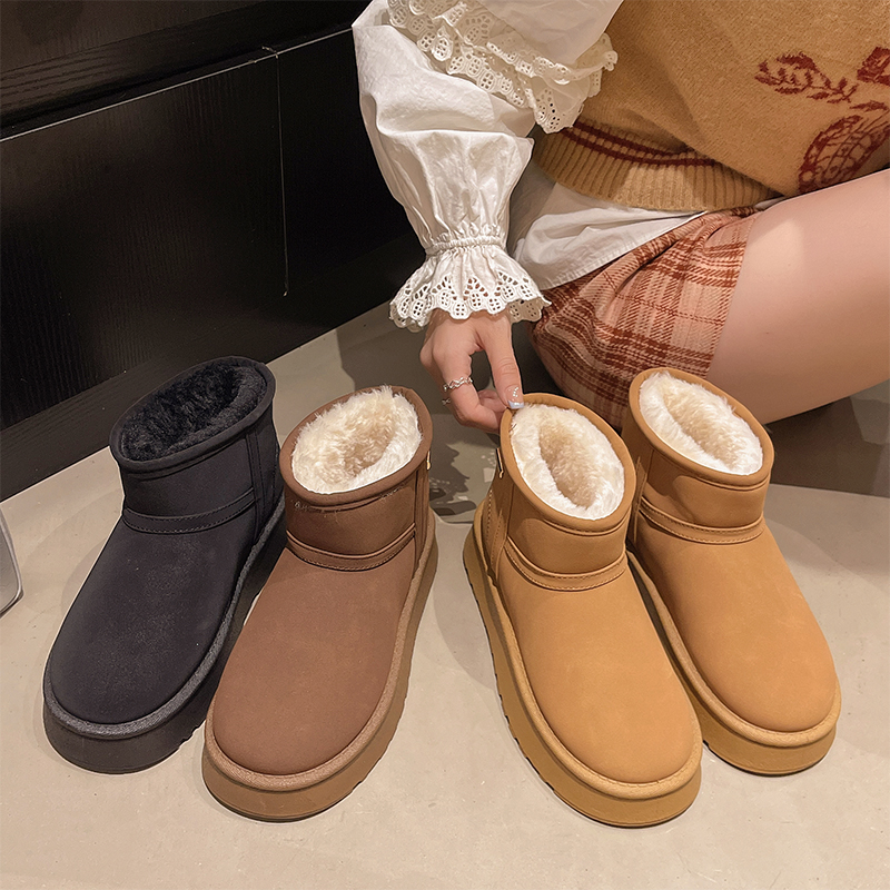 松糕厚底雪地靴女款2025新款冬季防水短筒增高棉鞋保暖加绒面包鞋