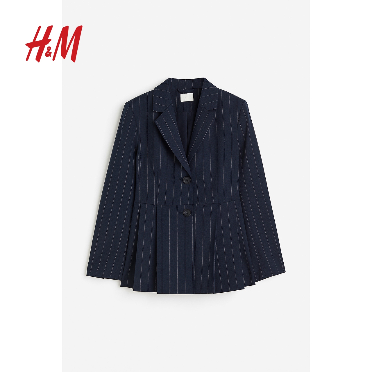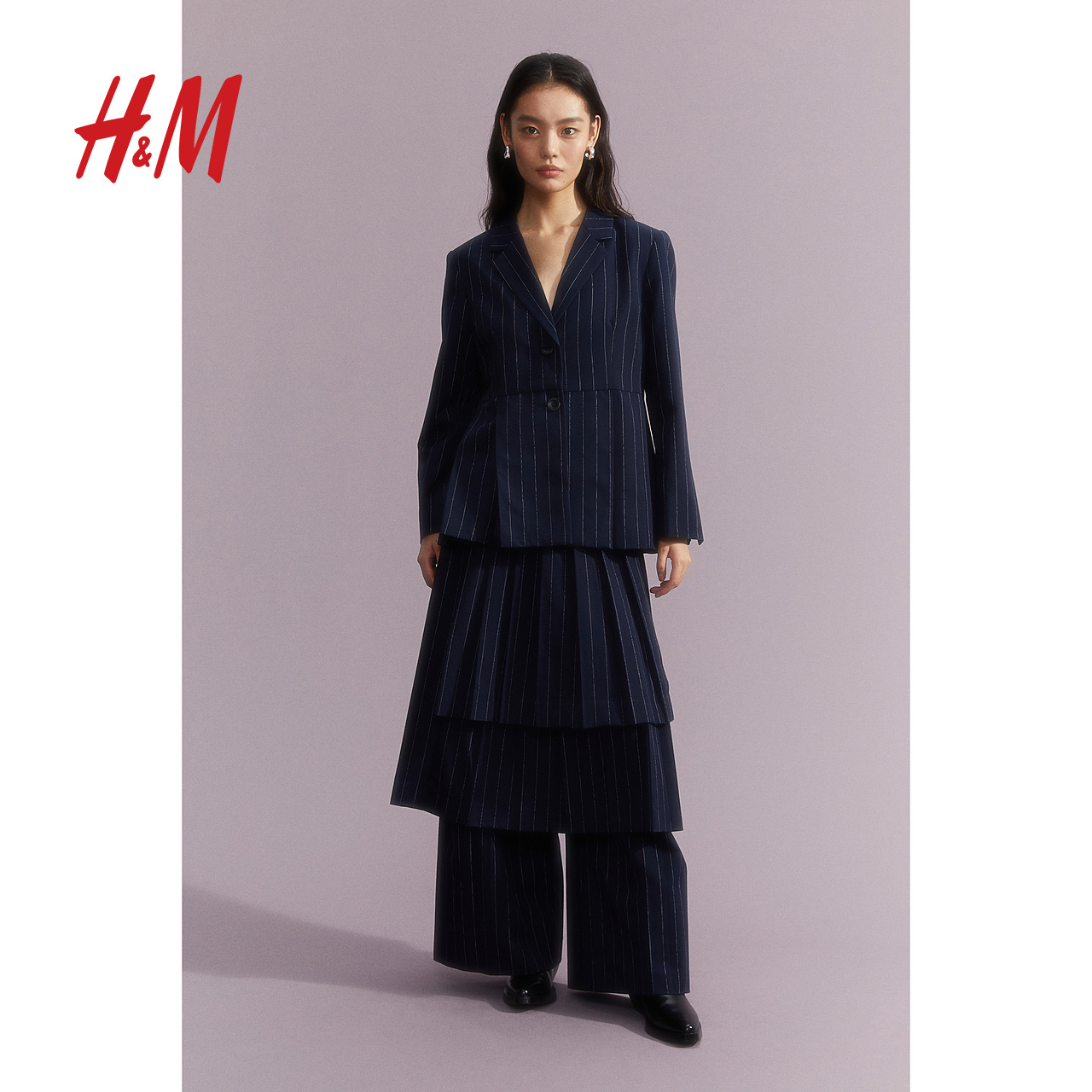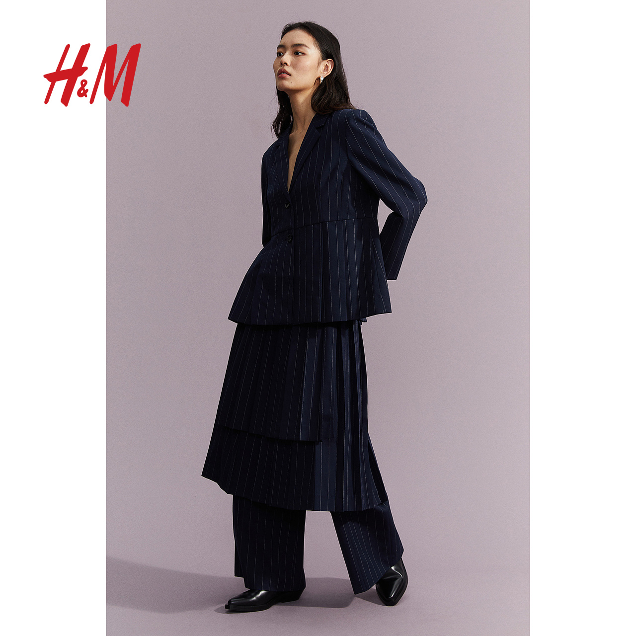 HM女装西装秋季垫肩褶裥长袖单排扣条纹休闲外套1211493