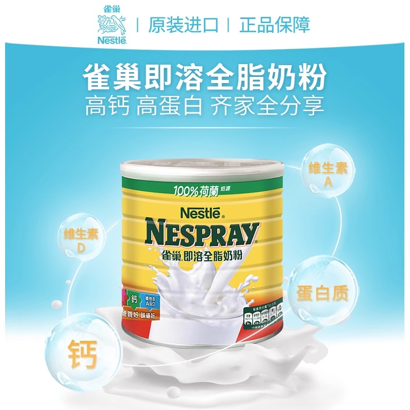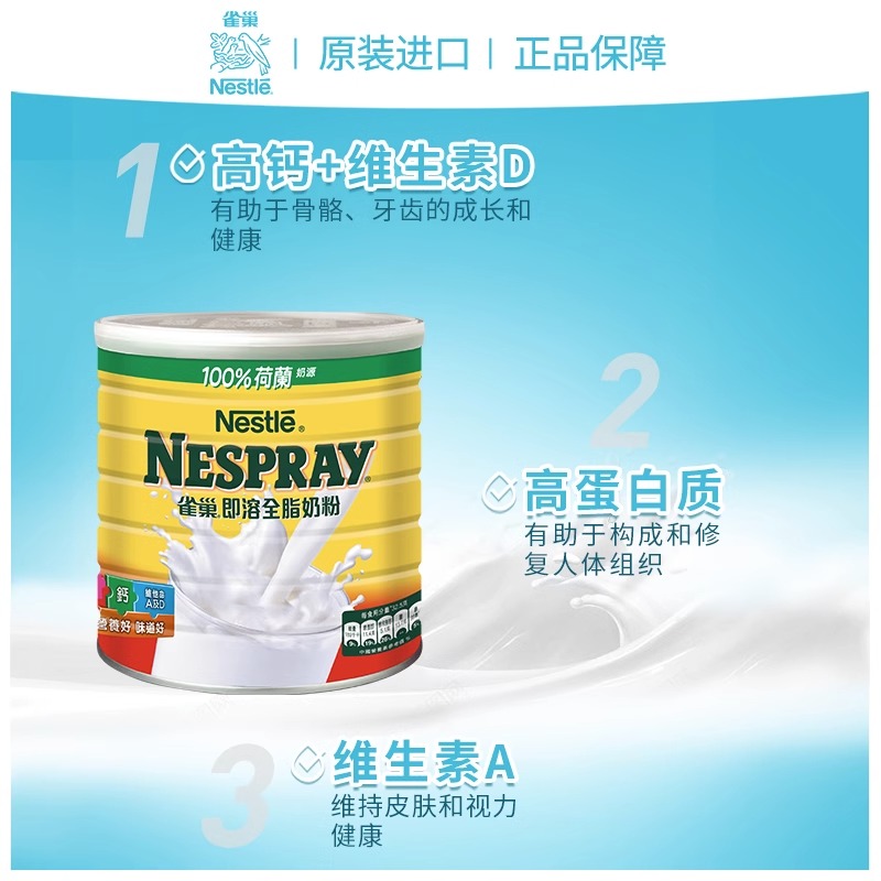 Nestle雀巢港版即溶全脂奶粉高蛋白高钙进口全家营养牛奶粉800g*3