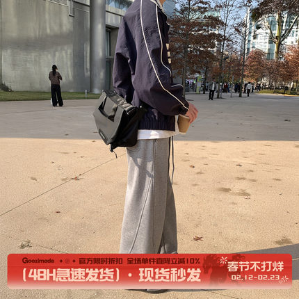 GOOZI MADE 灰色卫裤男春秋阔腿运动裤子日系男生直筒休闲裤男款