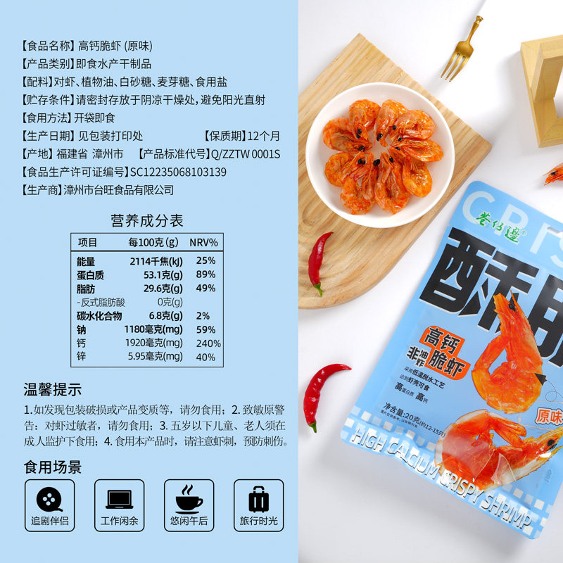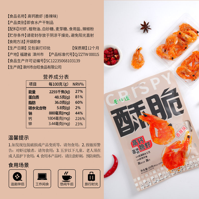 巷仔边烤虾干即食海味大虾加量非油炸办公室休闲零食小吃