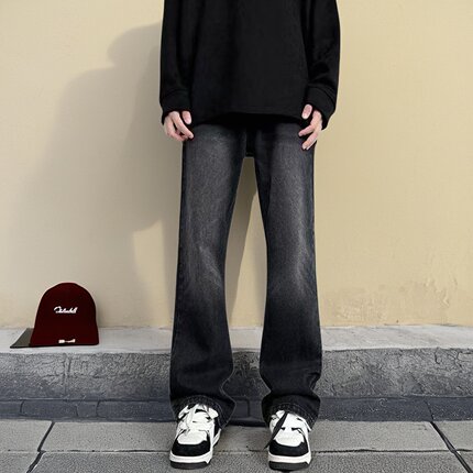 2026春秋微喇叭牛仔裤男士修身美式高街阔腿裤水洗复古男式长裤子
