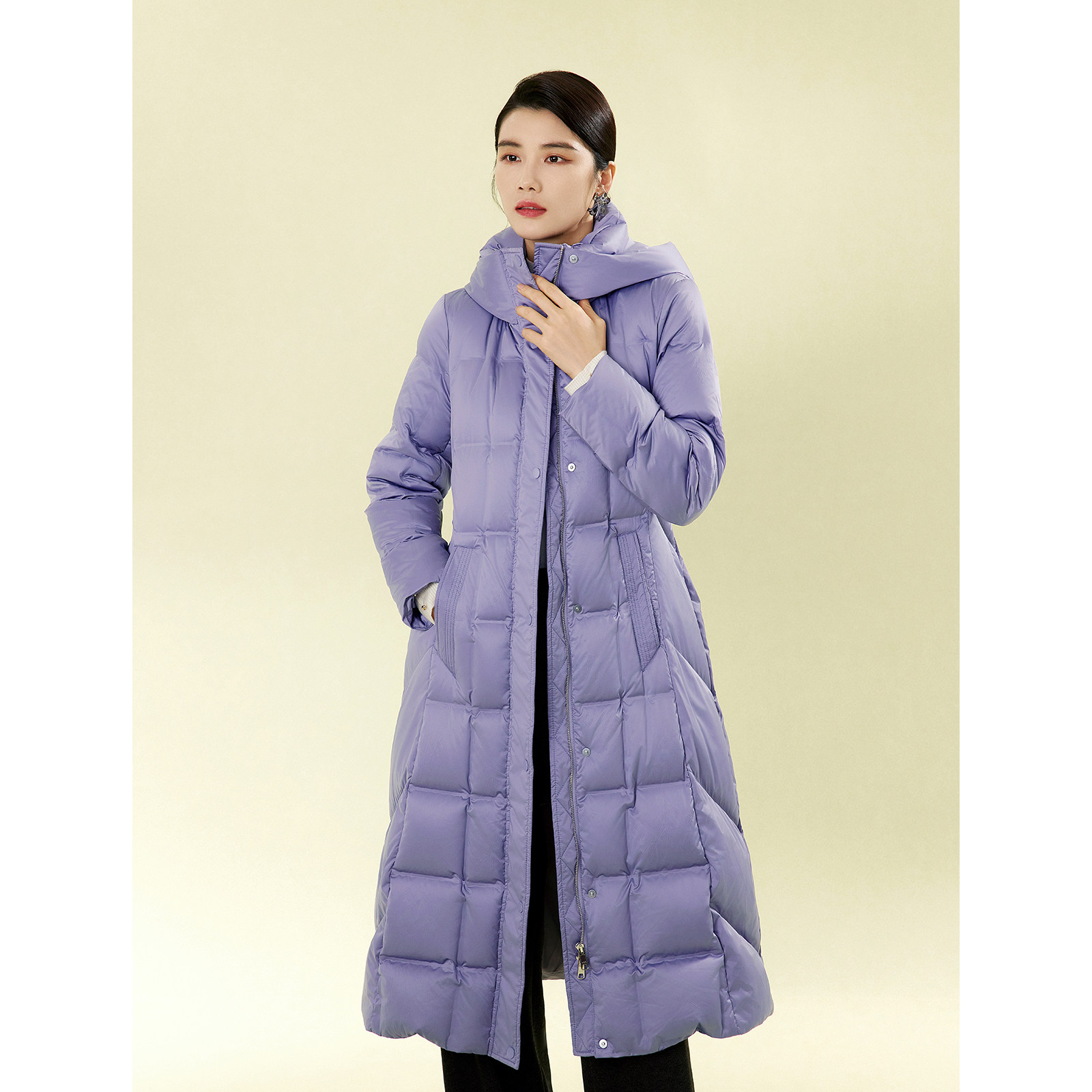 【新中式竹意压花】 BBLLUUEE/粉蓝衣橱2025冬装新款连帽羽绒服女