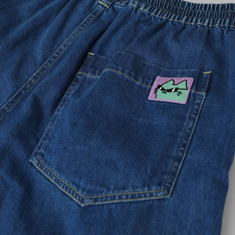 MOVEUP幻走2025夏季新款.FUN系列纯棉松紧腰猫咪绣花牛仔短裤女