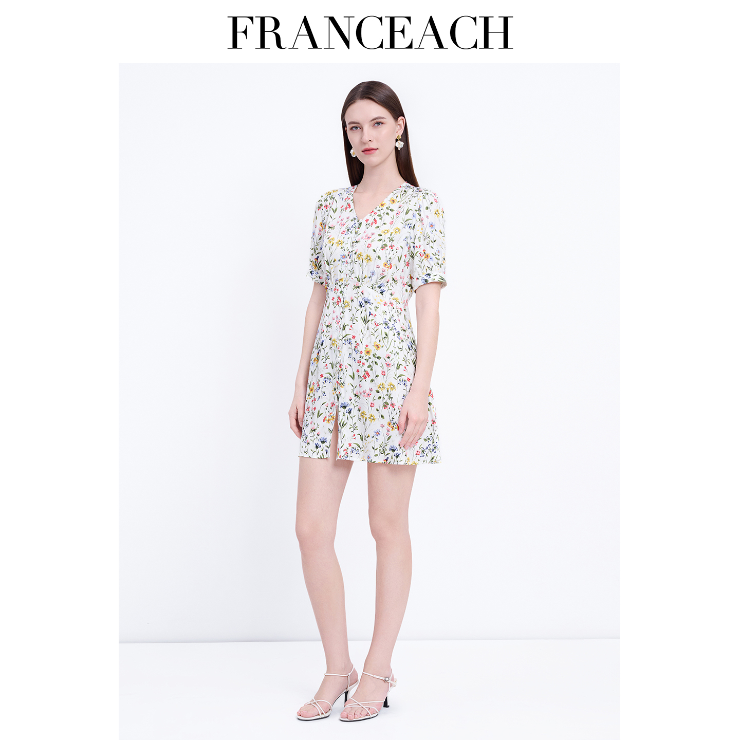 法涵意弛真丝连衣裙女2025夏季新款桑蚕丝小个子V领气质碎花短裙