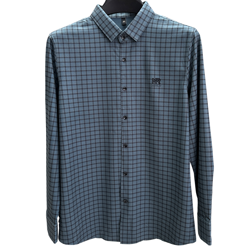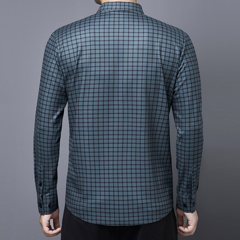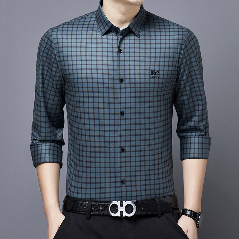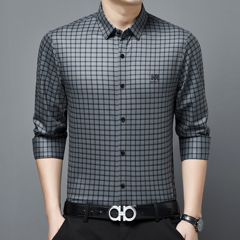春秋季新品男士长袖衬衫商务休闲格子衬衣免烫磨毛刺绣男上衣寸衫