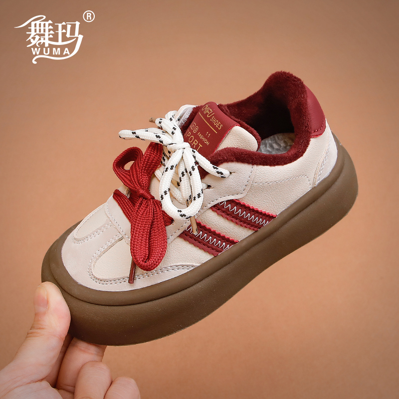 舞玛儿童保暖运动鞋2025新款冬季女童鞋子宝宝加绒防滑小女孩板鞋