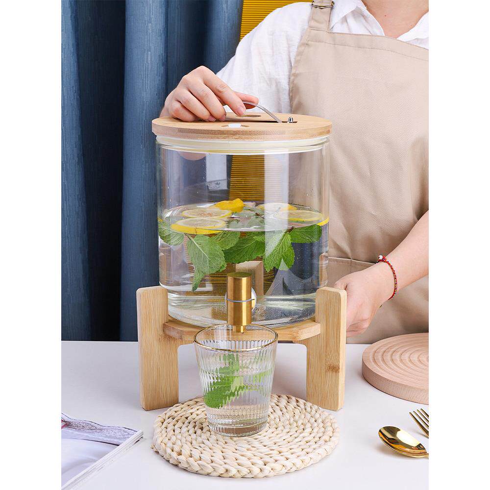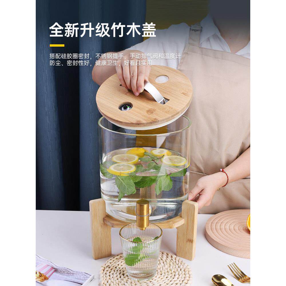 商用自助玻璃果汁桶带龙头饮料机酒店餐厅冷饮桶橙汁鼎家用凉水桶