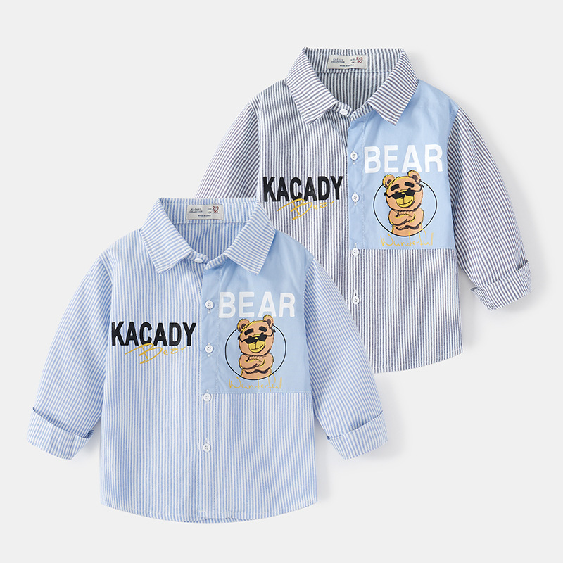 男童长袖衬衫春秋纯棉翻领卡通