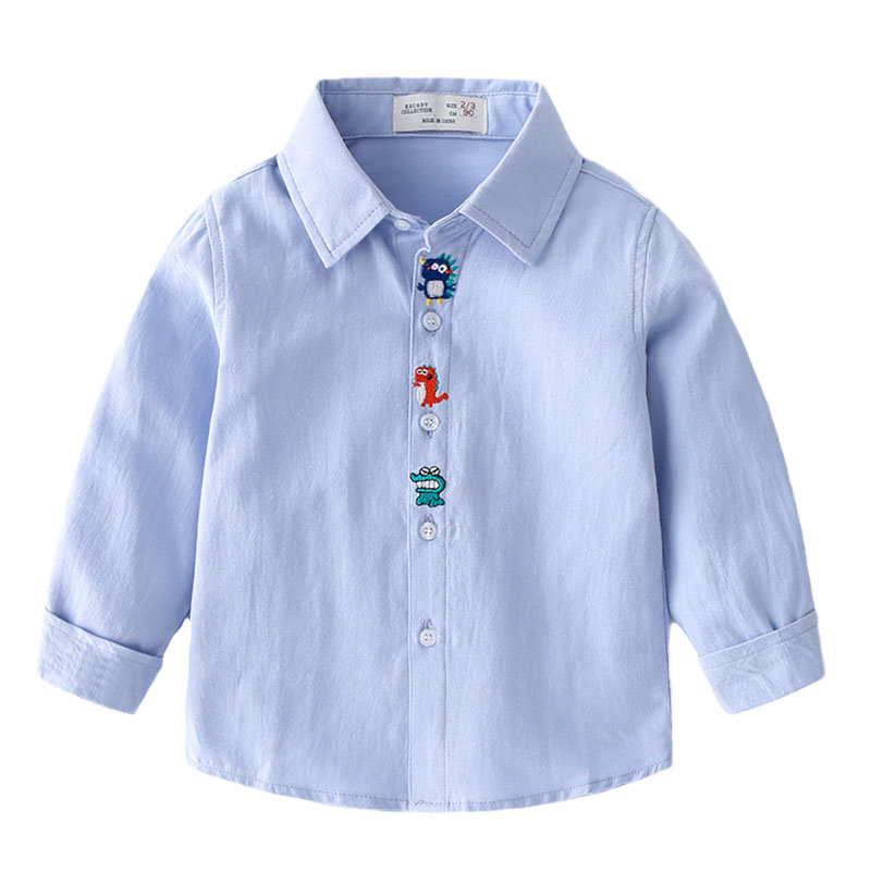 男童长袖衬衫春秋新款宝宝纯棉上衣童装中小童翻领卡通洋气衬衣潮