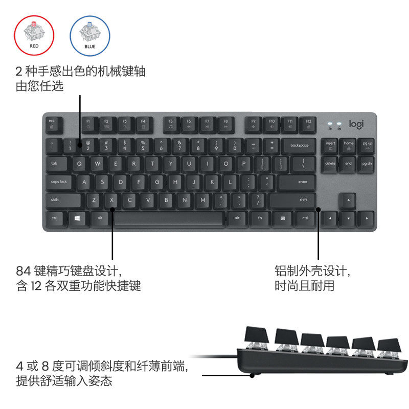 罗技K835有线真机械键盘办公游戏87键键帽TTC青轴红轴茶轴