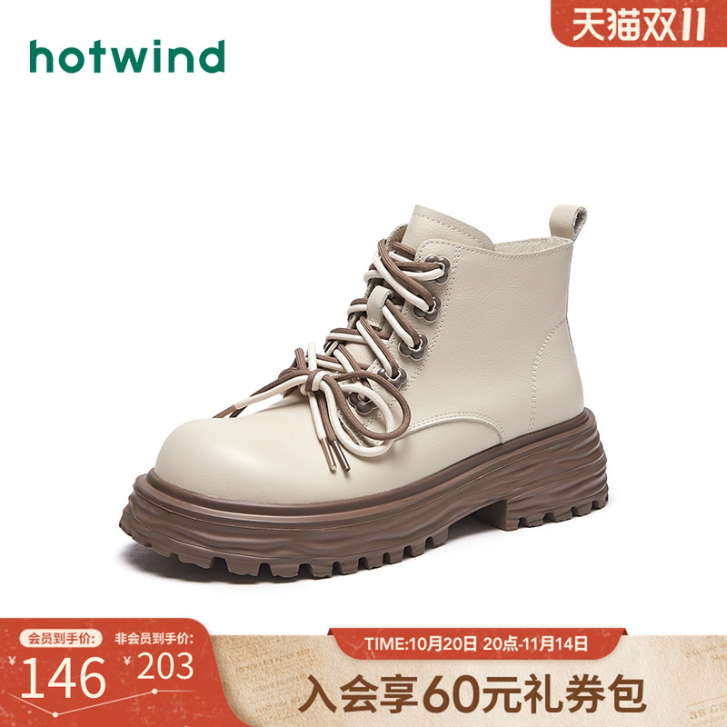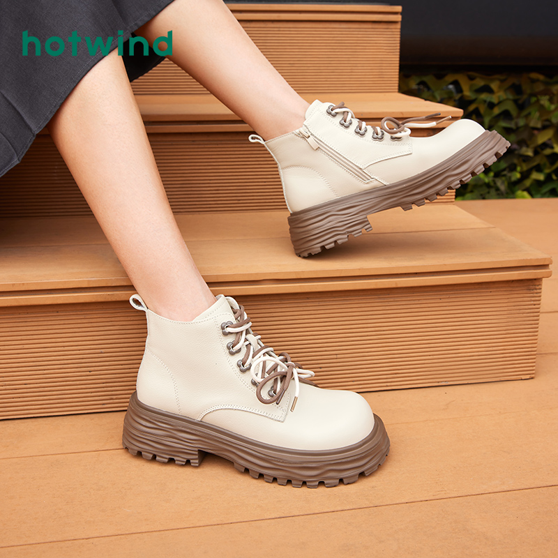 热风秋新款厚底马丁靴小个子短靴英伦风中帮皮鞋女黑色靴子