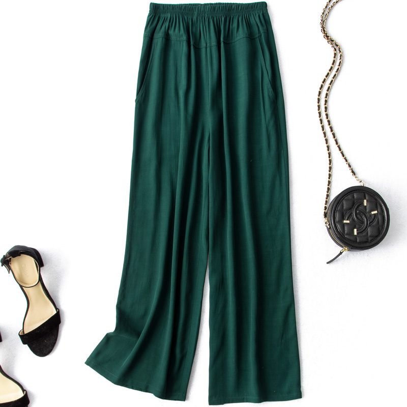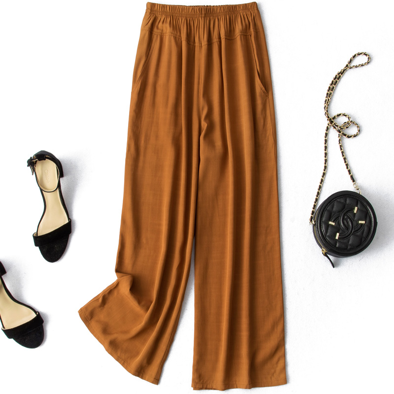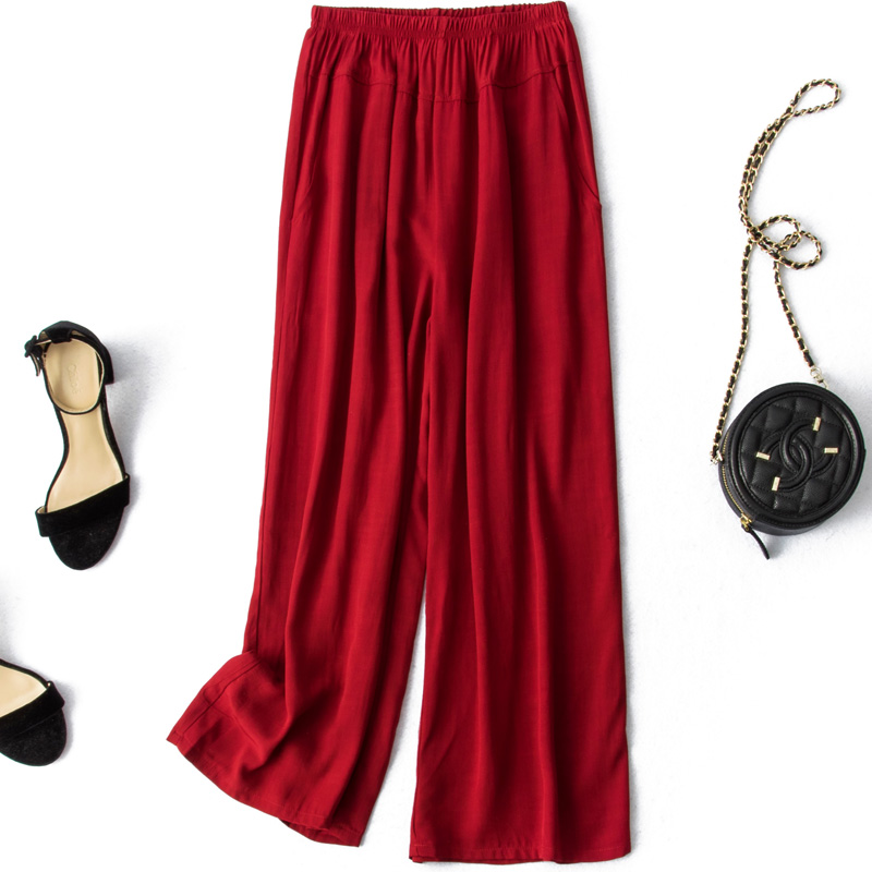 新款中老年女装夏装棉绸九分裤高腰松紧宽松时尚女裤妈妈装阔腿裤