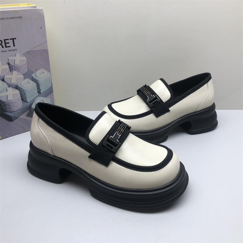 商场专柜撤柜真皮女鞋厚底松糕英伦风复古乐福鞋女拼色百搭春夏款