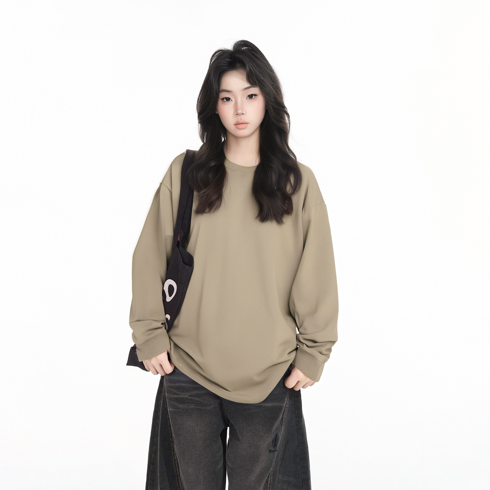 YEP潮牌美式复古纯色卫衣长袖T恤女春秋季套头上衣