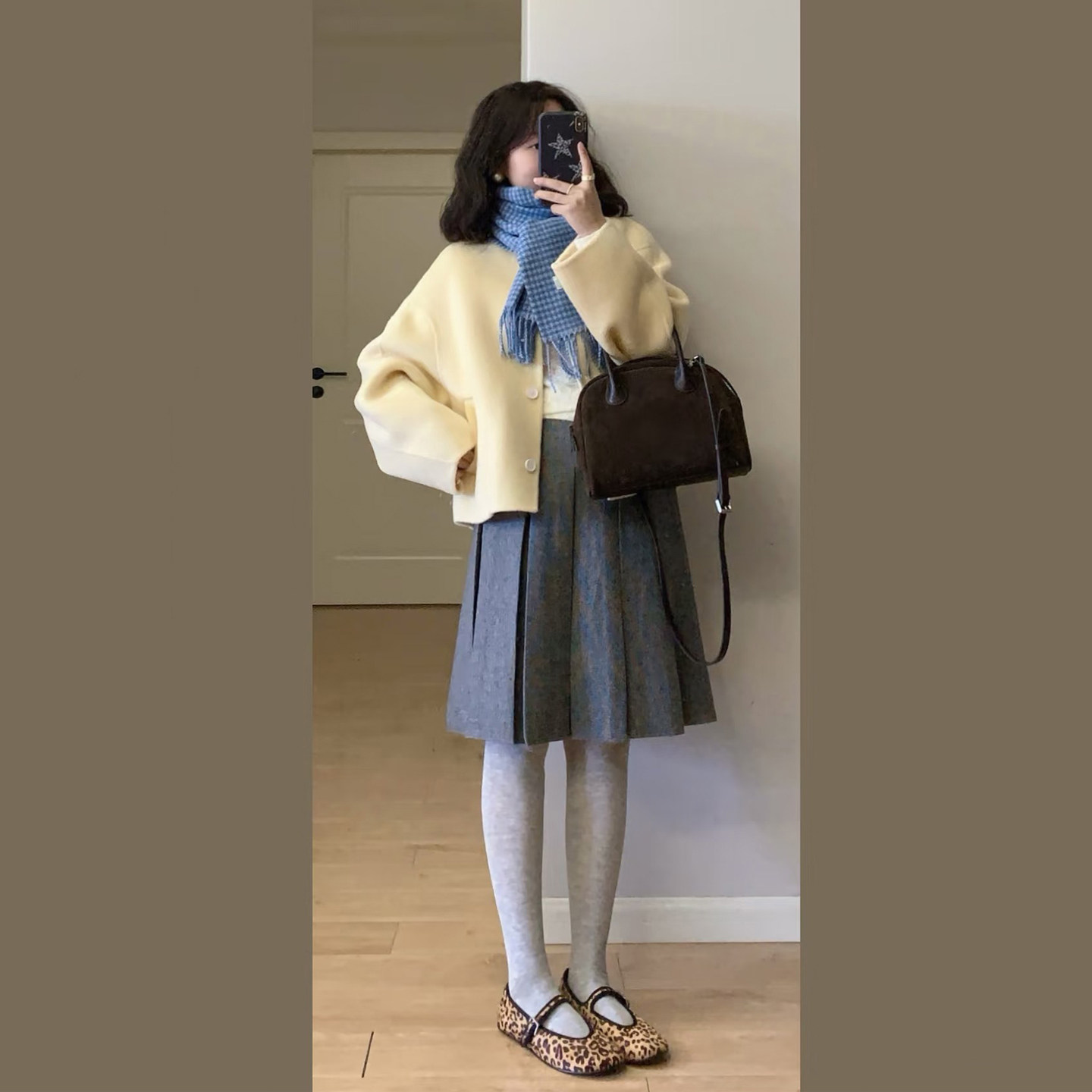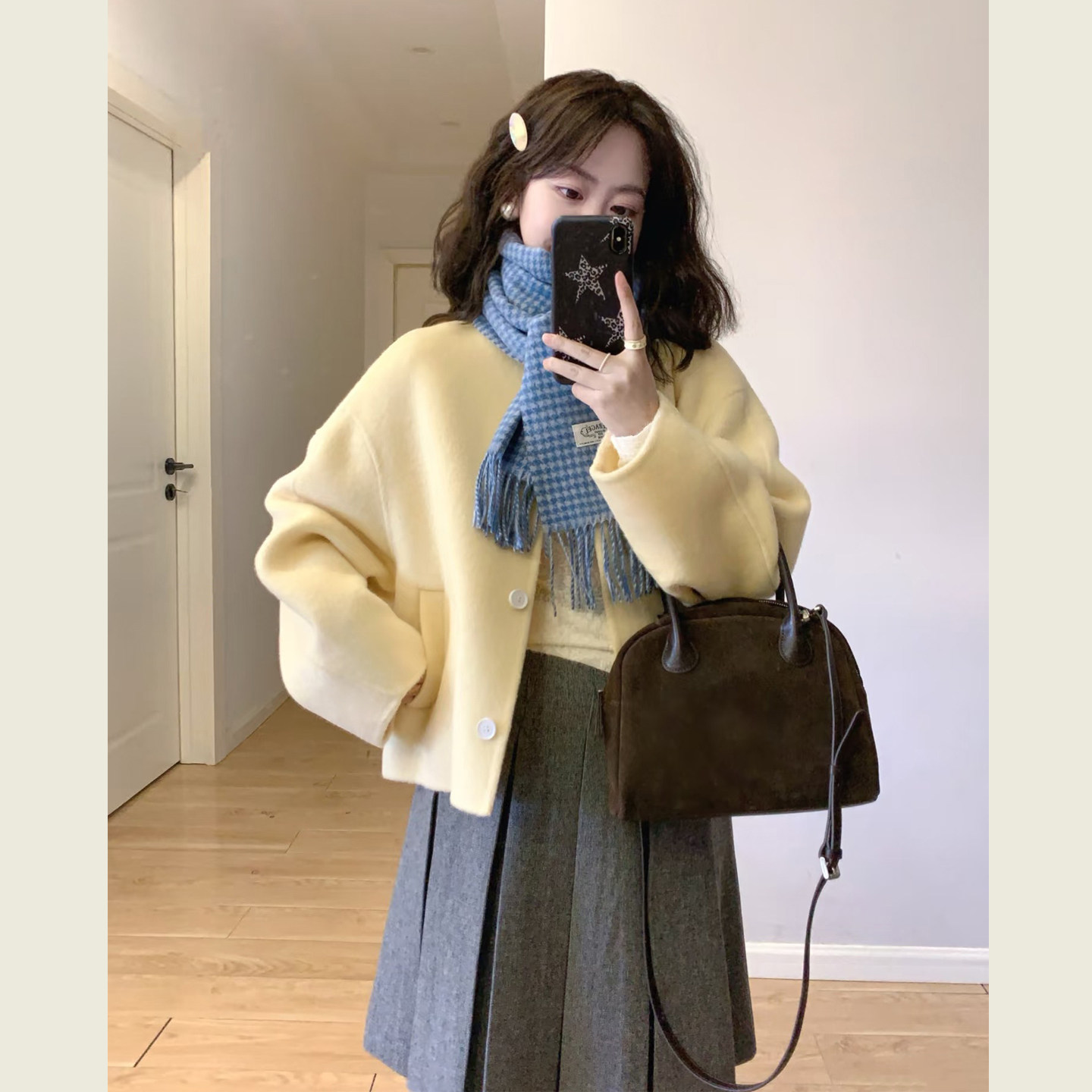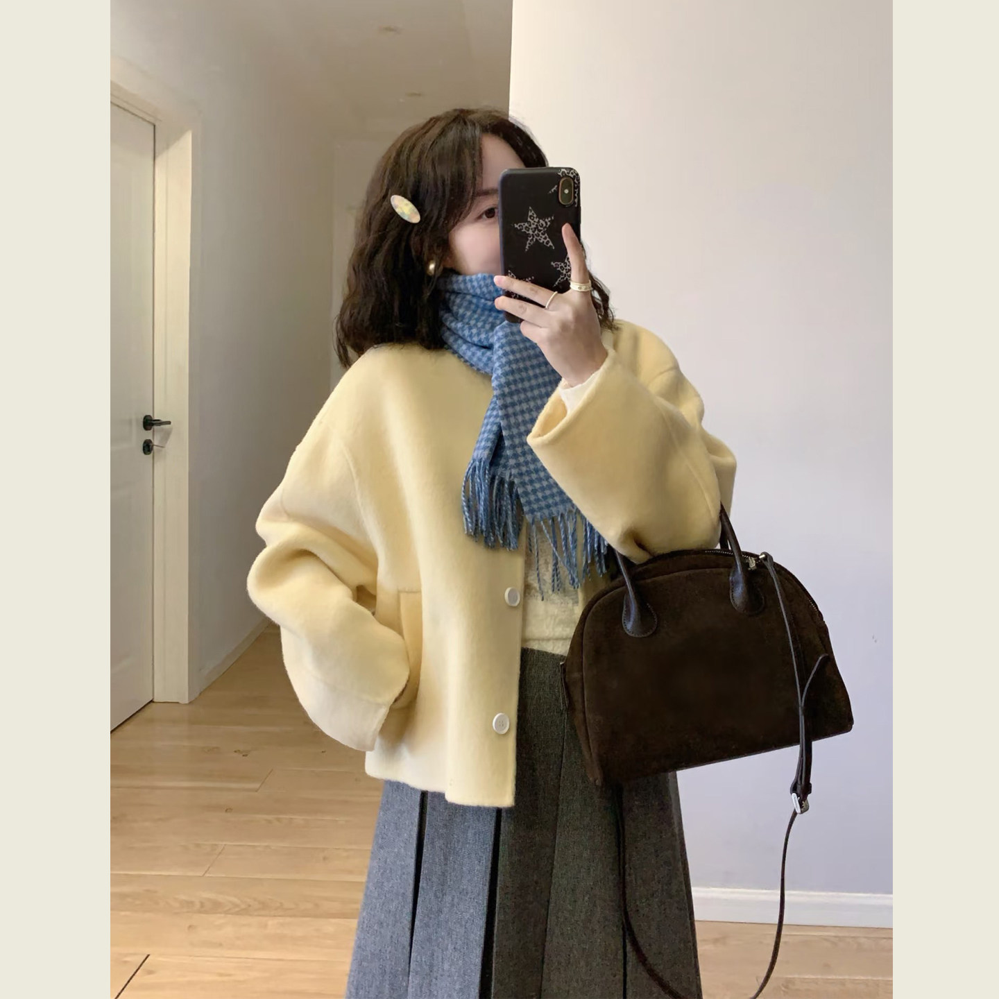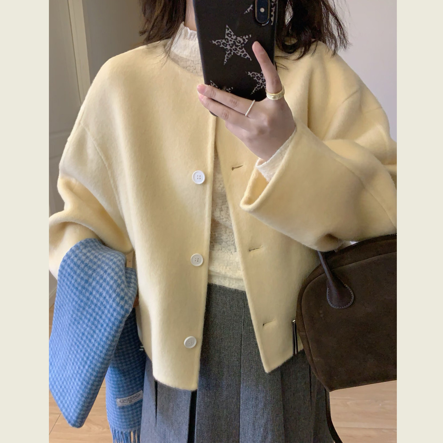 温柔风黄色短款减龄毛呢外套