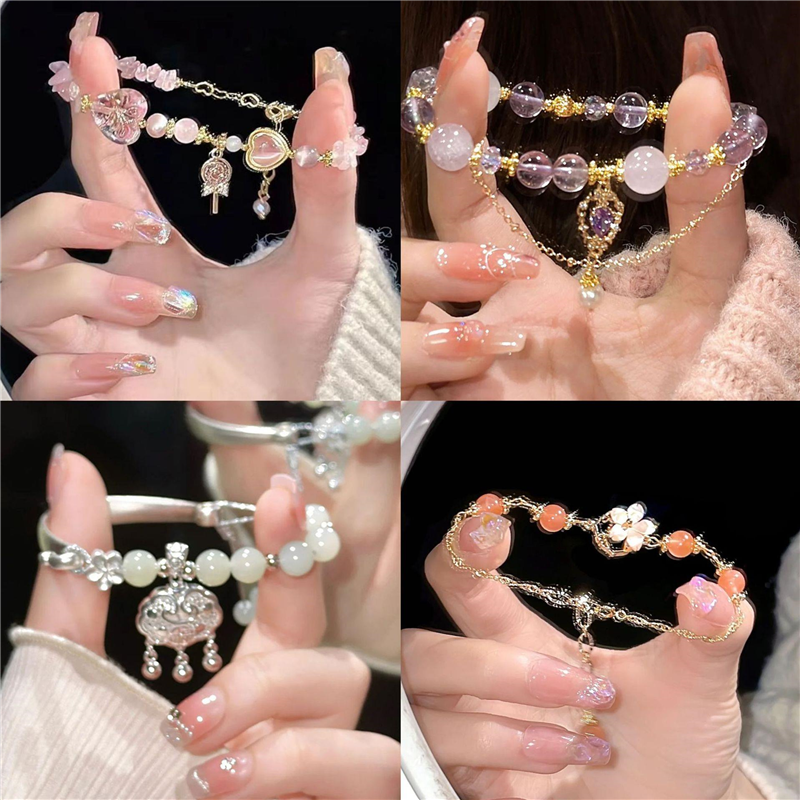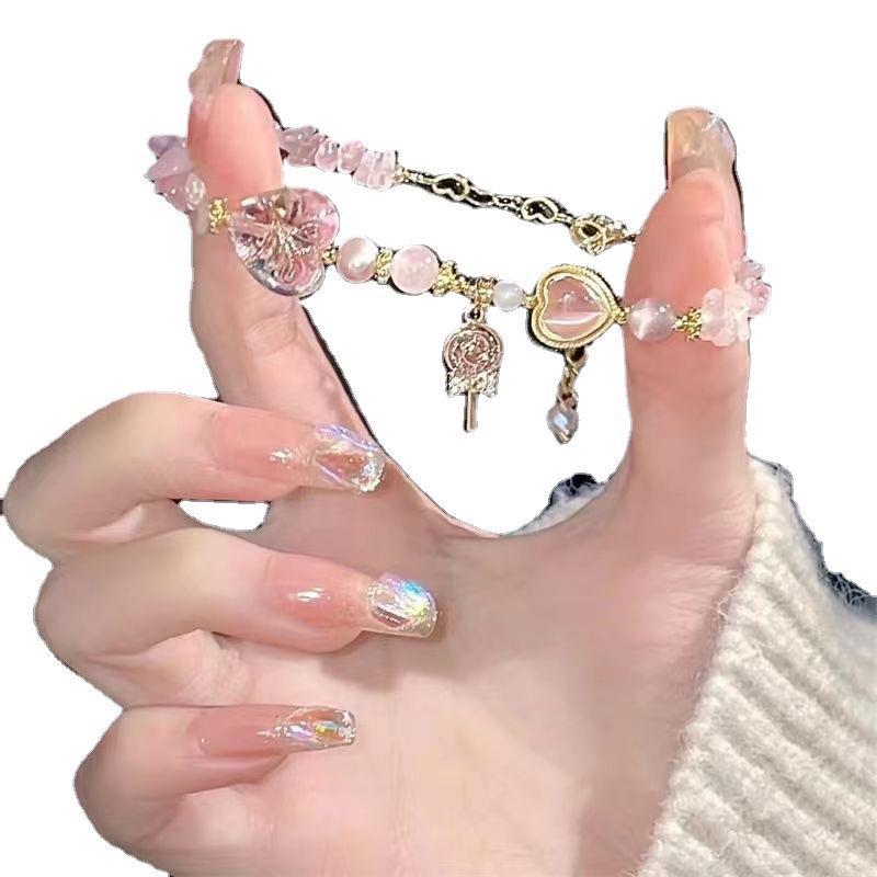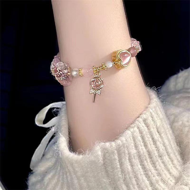 儿童手链女童女生女孩精美高级感手镯高颜值学生党粉色水晶手串款