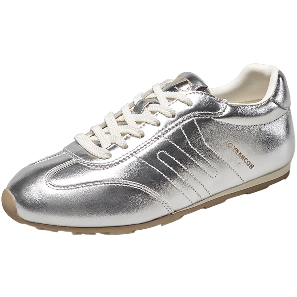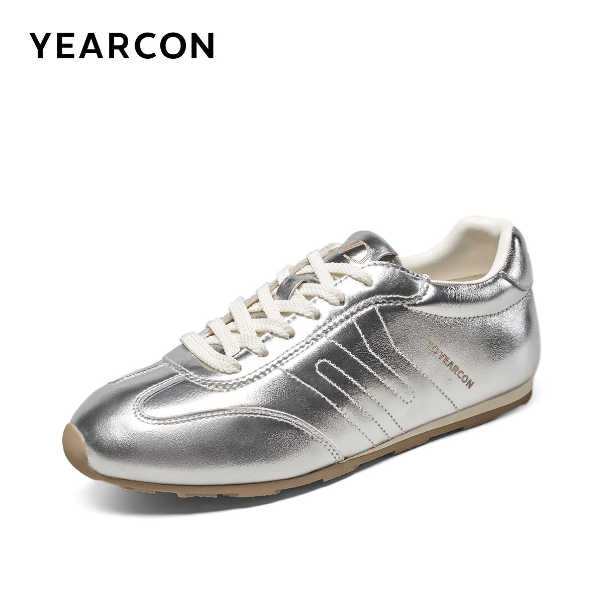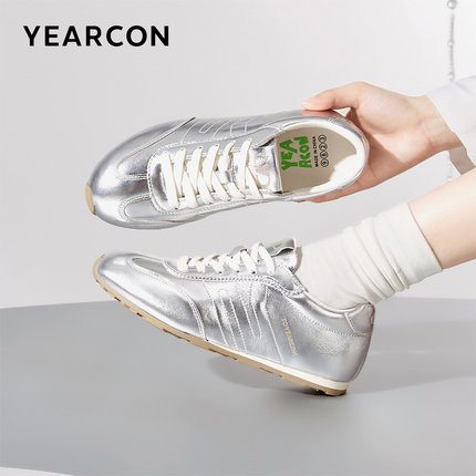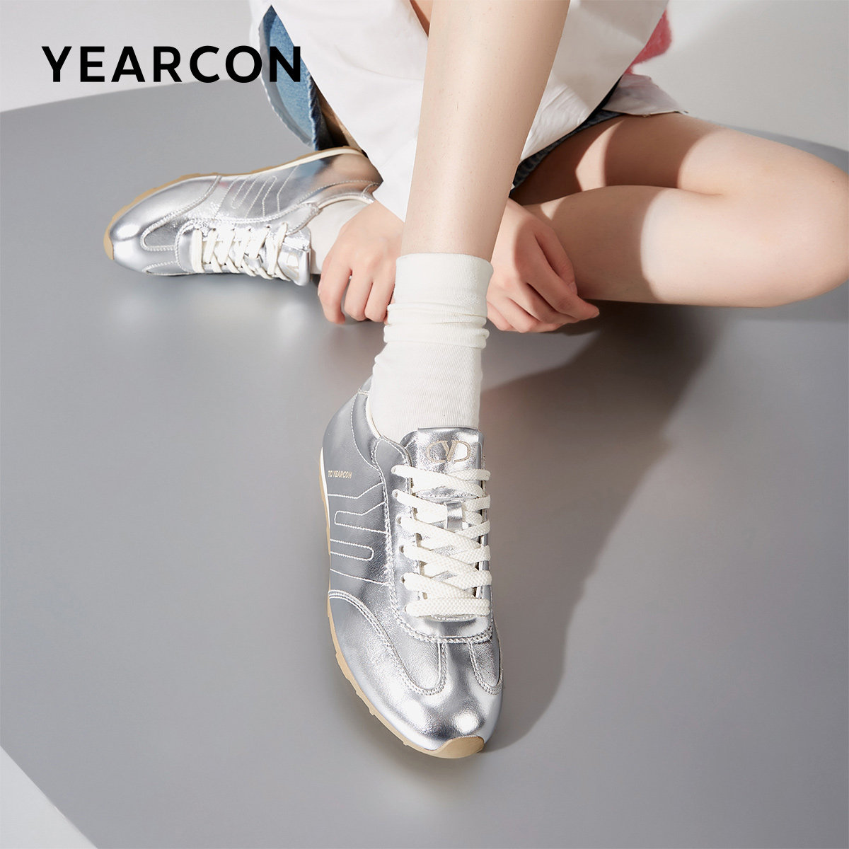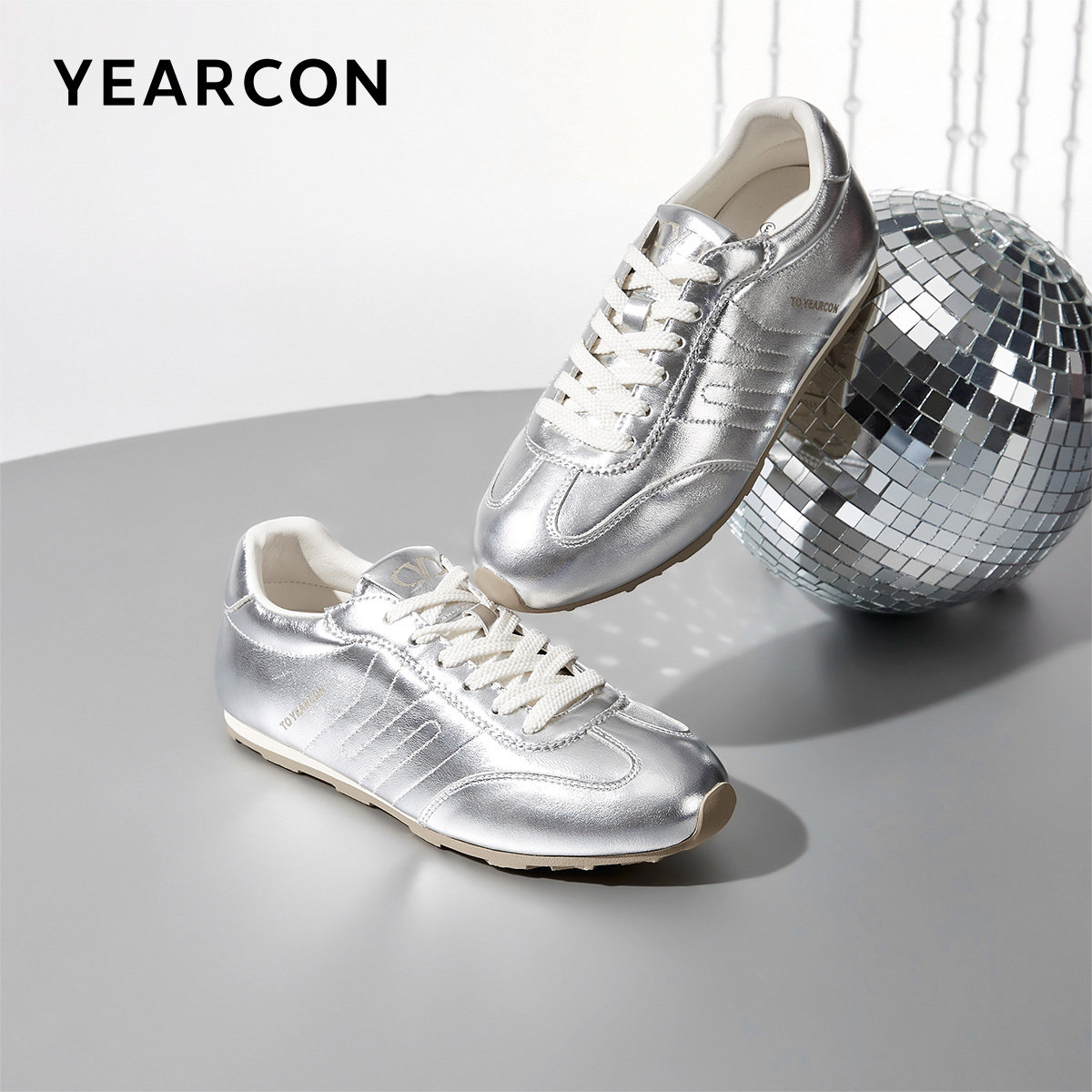 意尔康女鞋春夏德训鞋真皮内增高银色运动休闲复古单鞋英伦风皮鞋