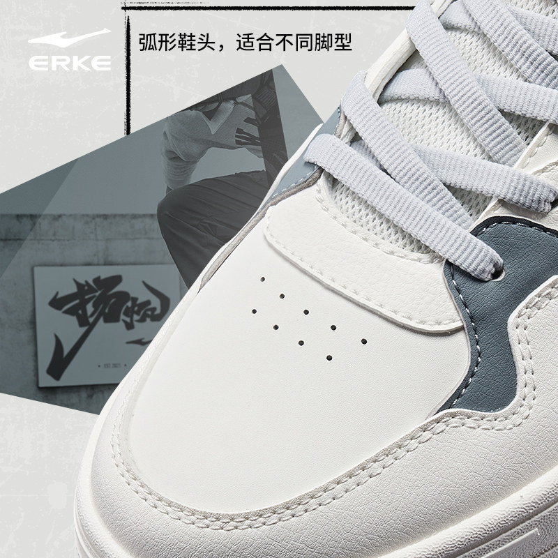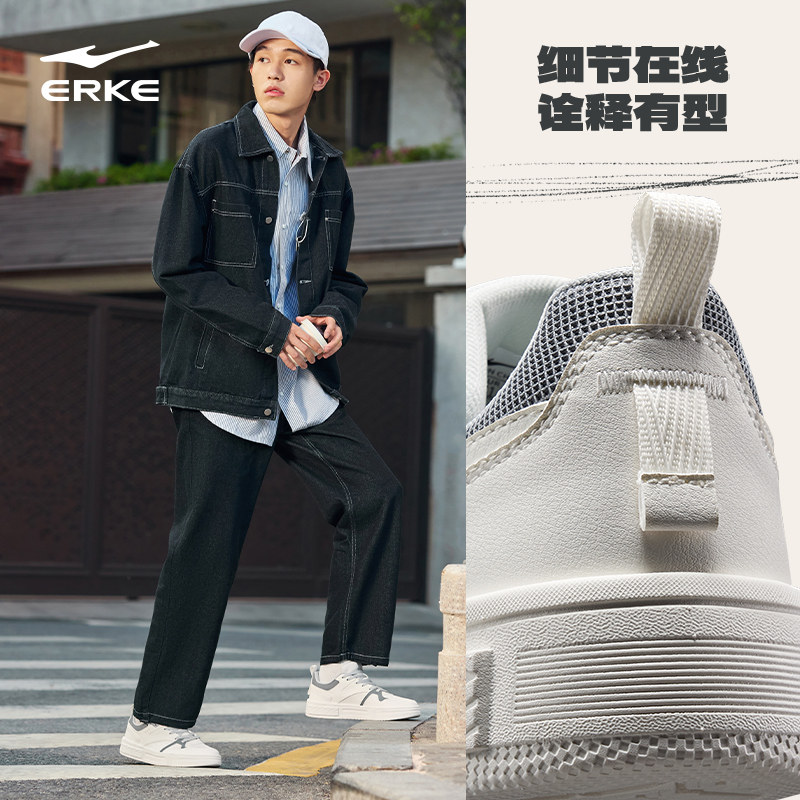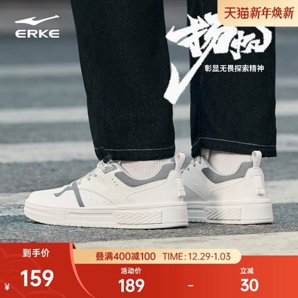 扬帆鸿星尔克板鞋男鞋冬季新款鞋子黑白厚底运动鞋皮面百搭休闲鞋